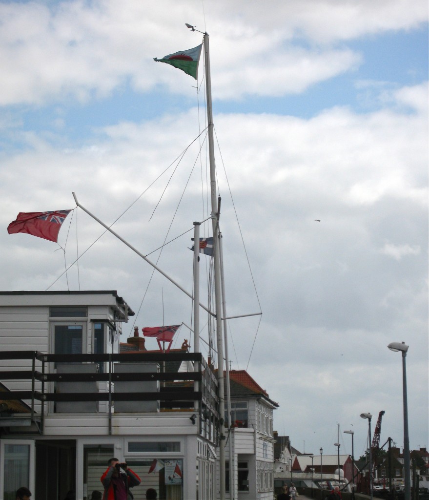 The “race box” on the top floor of the Burnham Sailing Club. A committee member sits up here to sound the horns, check the times and be in contact with the racers. The Crouch Yacht Club is right next to it on the sea wall. Photo by me