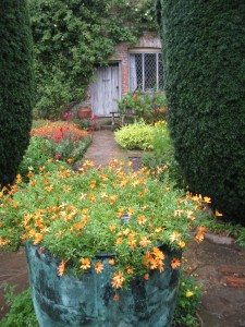 Of all the gardens I have visited in England, one of the most beautiful and original has got to be Sissinghurst Castle Garden. Located in a rural area of Kent, I found it quite by accident after coming across a small documentary about it on television years ago. I put it on my list as a “must visit next time we are in England”, and the next time we were in England, we rambled through the countryside east of Tunbridge Wells and found it near the village of Cranbrook on the A262. There, near the ruin of a great Elizabethan house is the spectacular National Trust garden, gently tucked in among the farmland and surrounding woods.