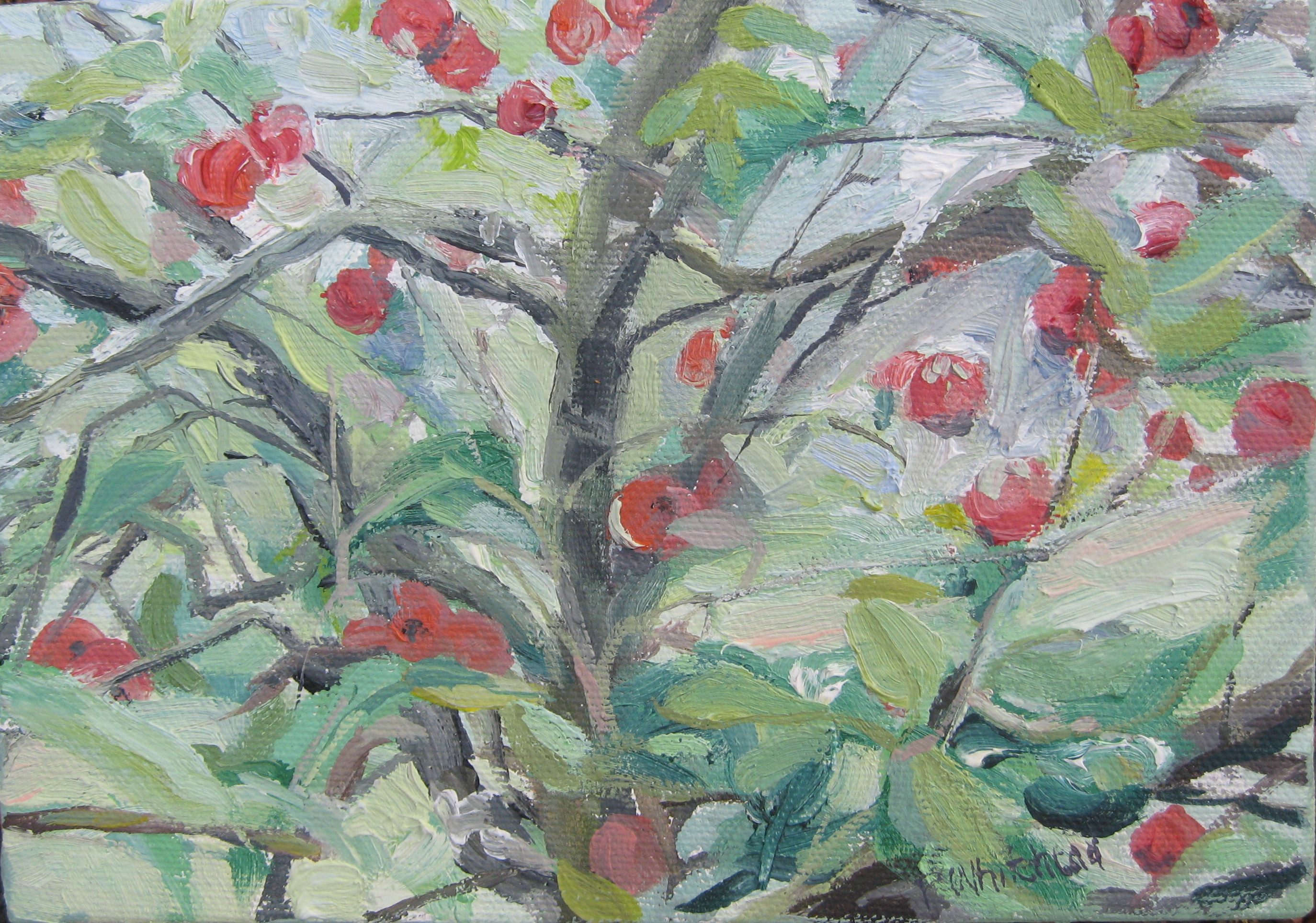 apples, art, castle, England, flowers, garden, Kent, oil painting, orchards, paintings, Sissinghurst