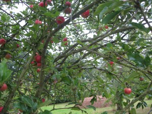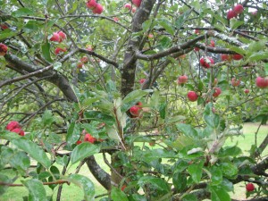 After leaving the white garden, I moved outside the “rooms” in to the fields beyond and found the most glorious apple orchard. The red fruit was bright from the rain, and weighing the branches down. It smelled delicious.
