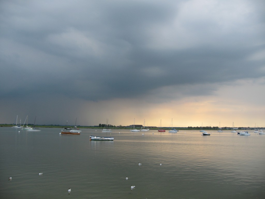 The first evening we came in to Burnham-on-Crouch, My Beloved Brit’s old sailing haunt, we were two beats ahead of showers. It was wonderful coming around the corner in the familiar village.