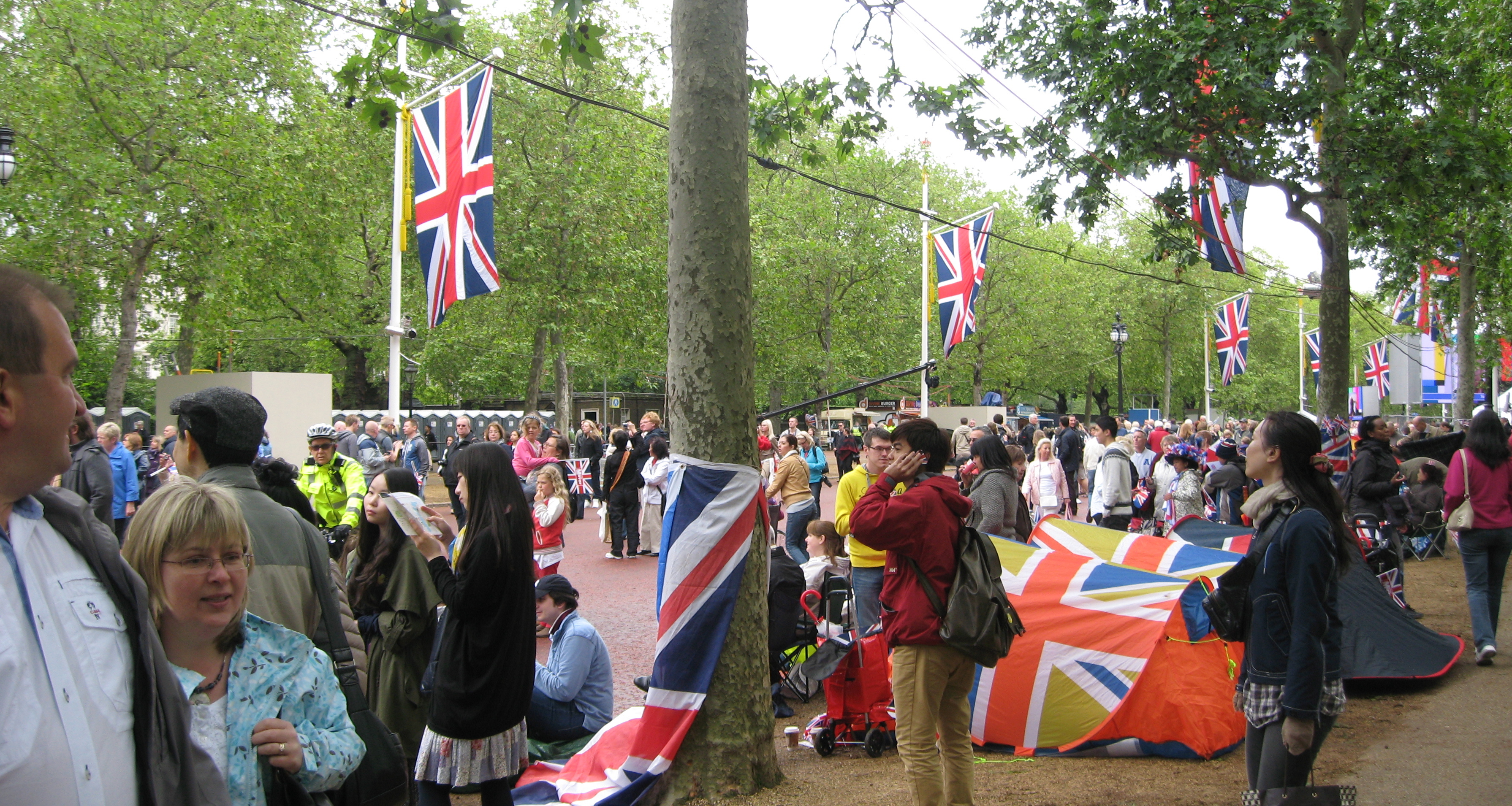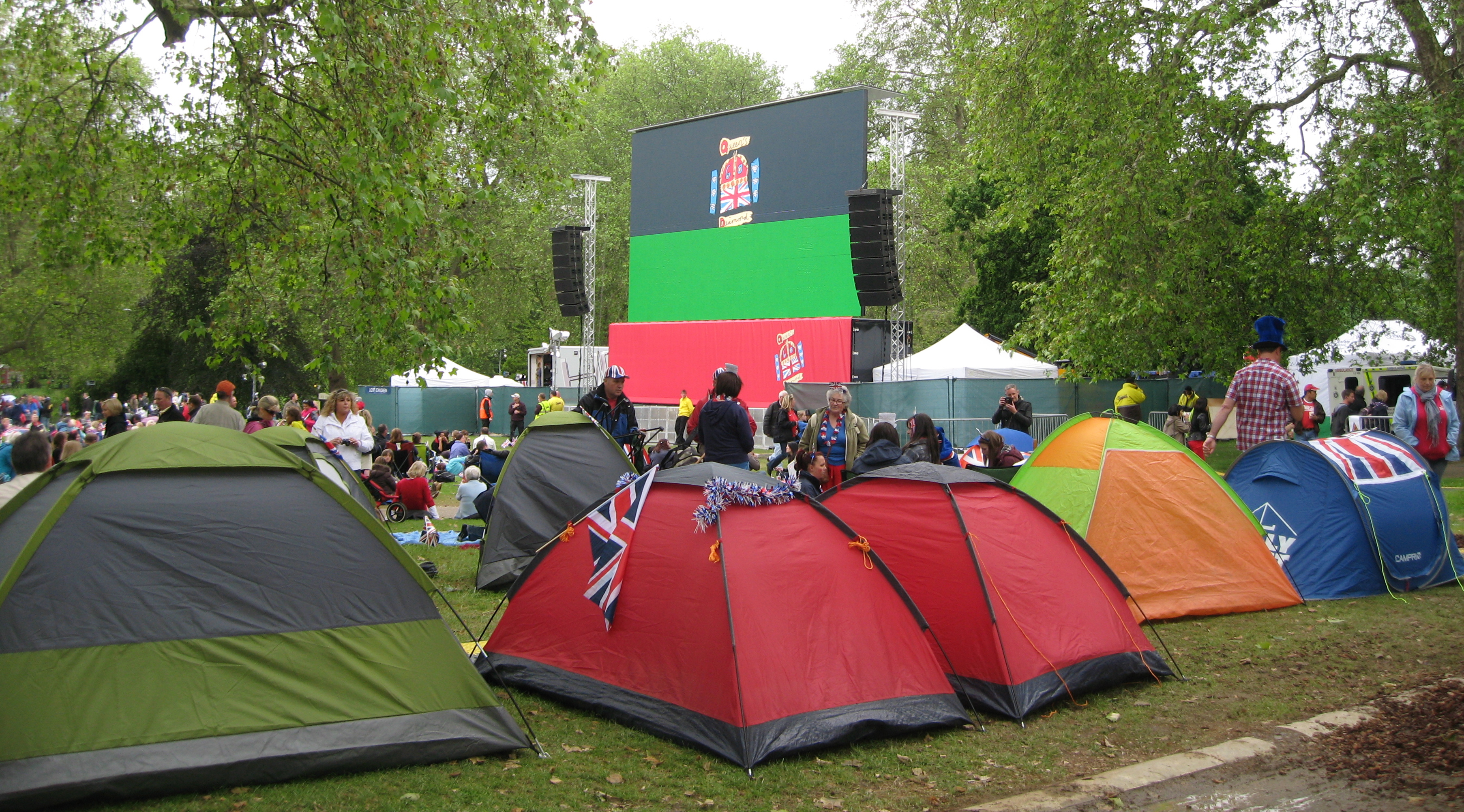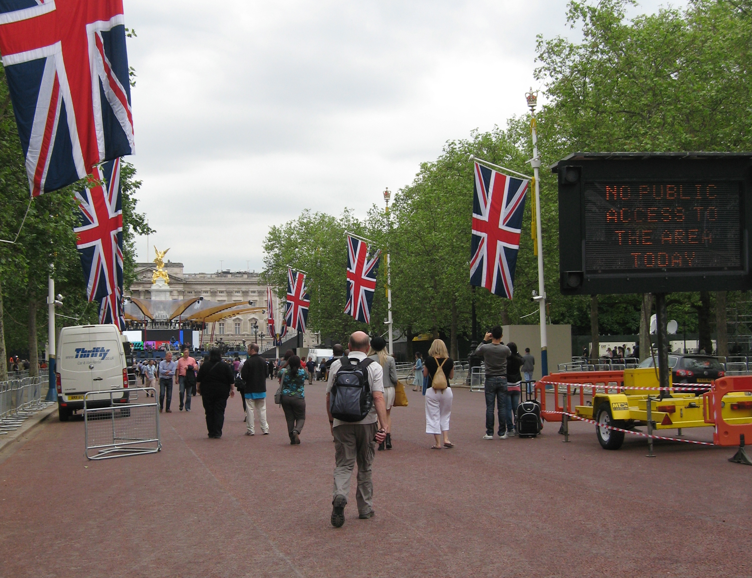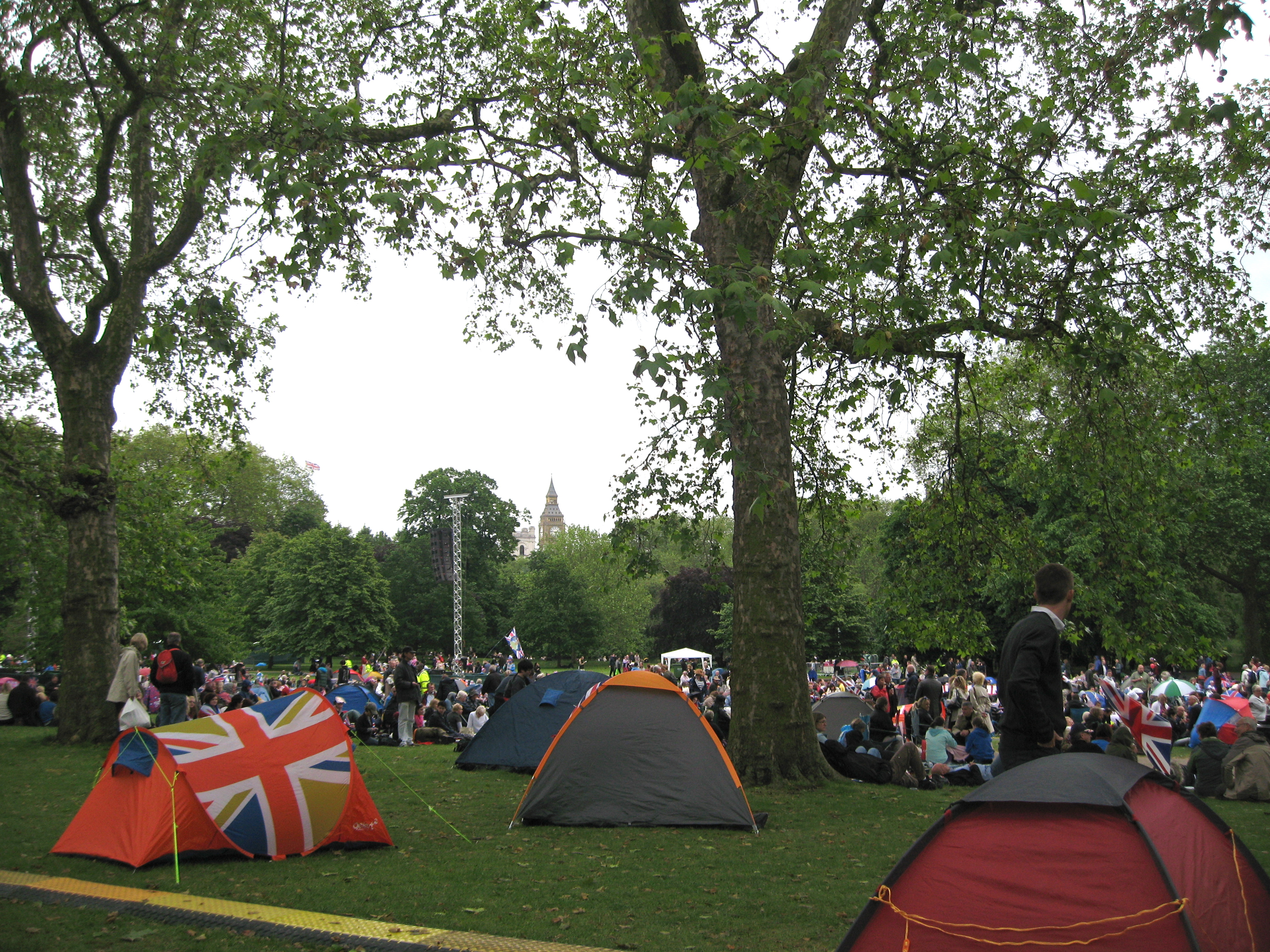 The boards kept flashing notices that if you were planning to stay in the park overnight to view the parade tomorrow, you had to be in St. James’s Park, not on the Mall. In the park overnight!!!