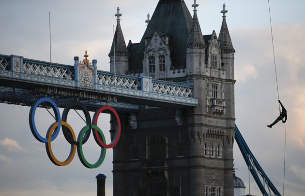The Olympic Torch arrived in London! The torch was carried by Royal Marine Martyn Williams as he rappelled down into the Tower of London from a Royal Navy Sea King helicopter July 20th. Read the story in The Washington Post here.