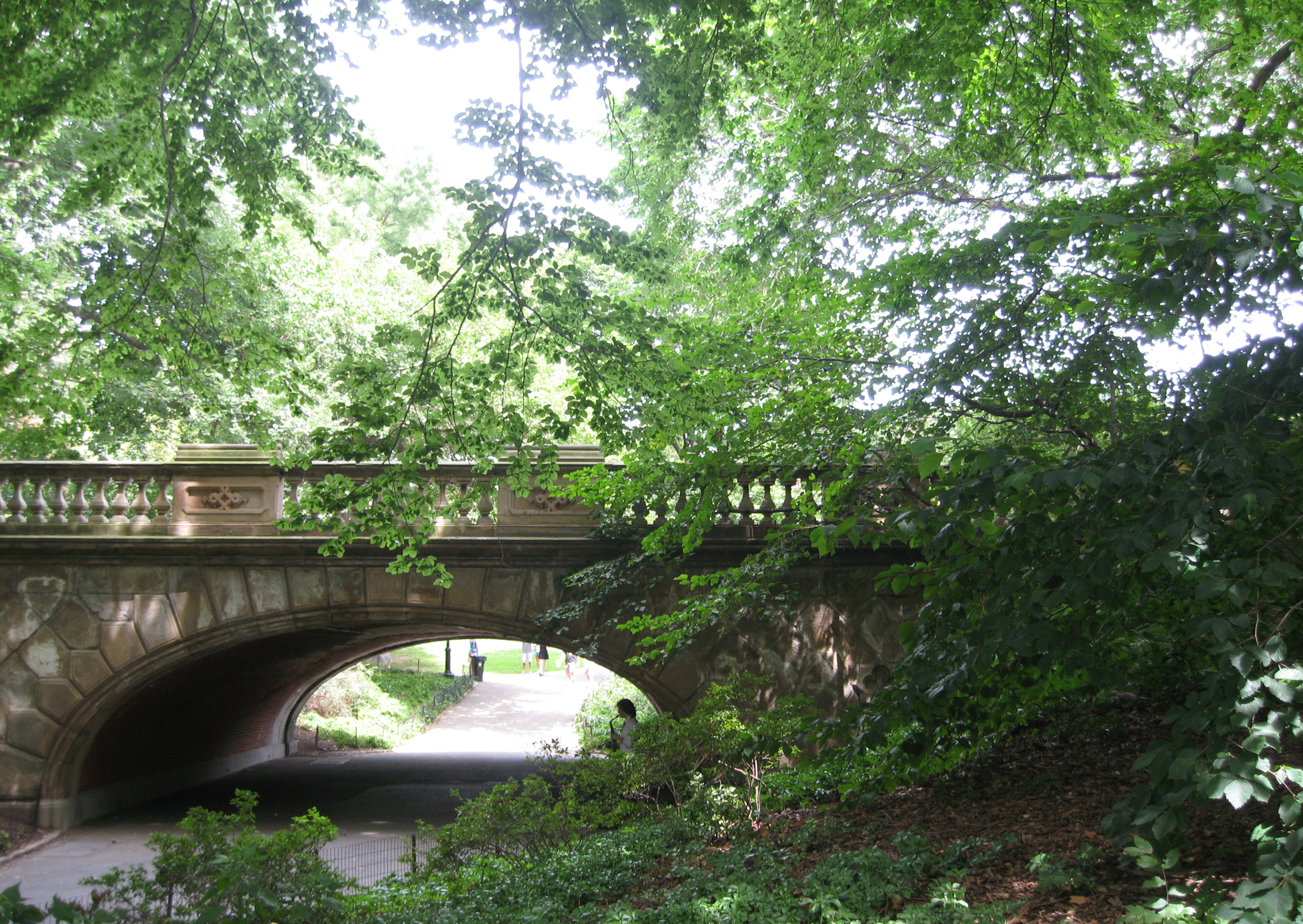 Central Park in summer, with a jazz musician playing under the bridge. Photo by me.