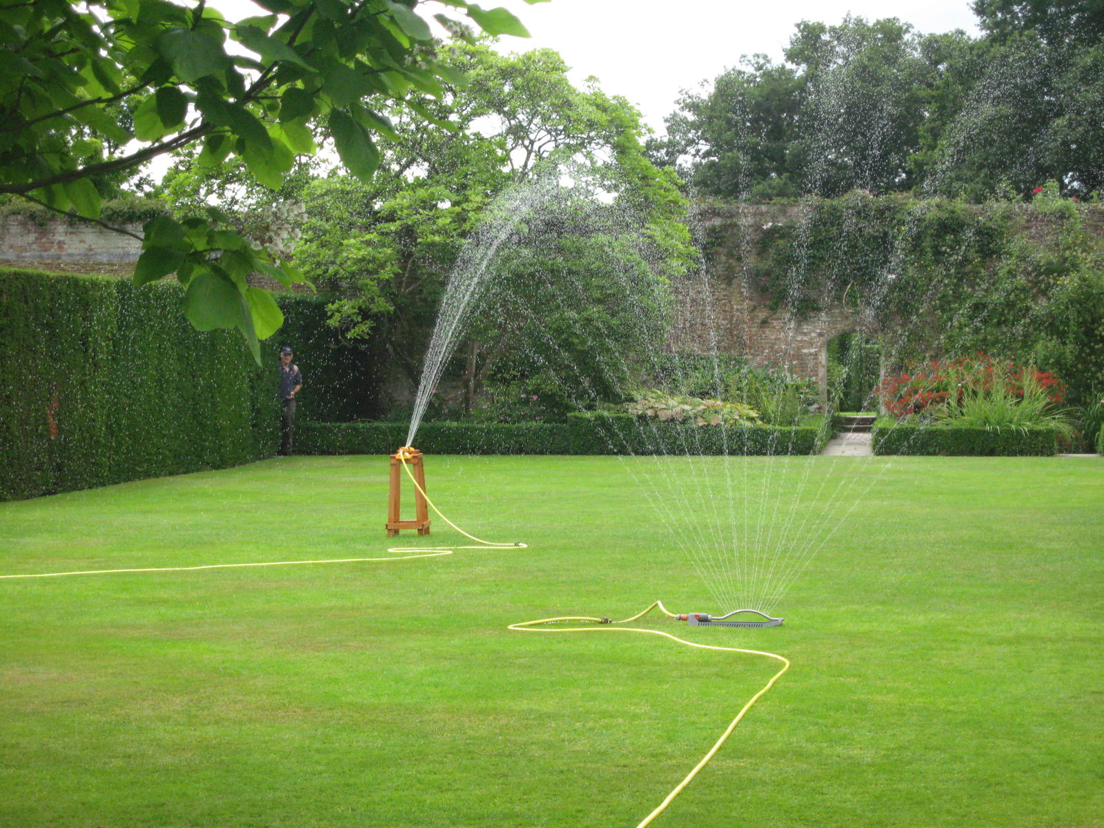 This is one of the first years I remember seeing sprinklers moved around many of the gardens. It was a dry, warm summer in England by their standards.