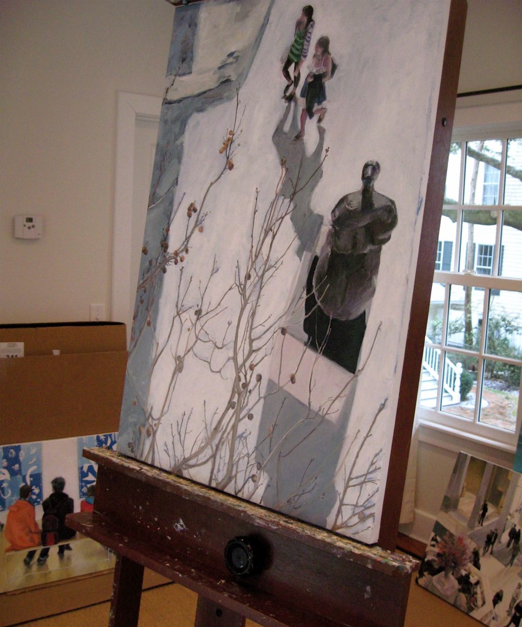 I am working on three new canvases now, each related to art museums I have visited. It has been months of steady work, and now I am in the final phase of all three…my favorite part after struggling through the difficult middle stage.