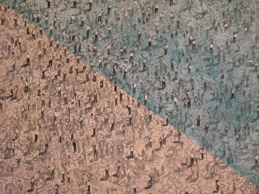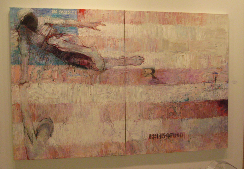 Eric Fischl’s new works portraying art fair visitors were scattered through the gallery displays. They intrigued me. He had started this series sometime around the time I was just getting in to my gallery/city series. It is interesting to see a different take on the art scene, so much a part now of modern life.