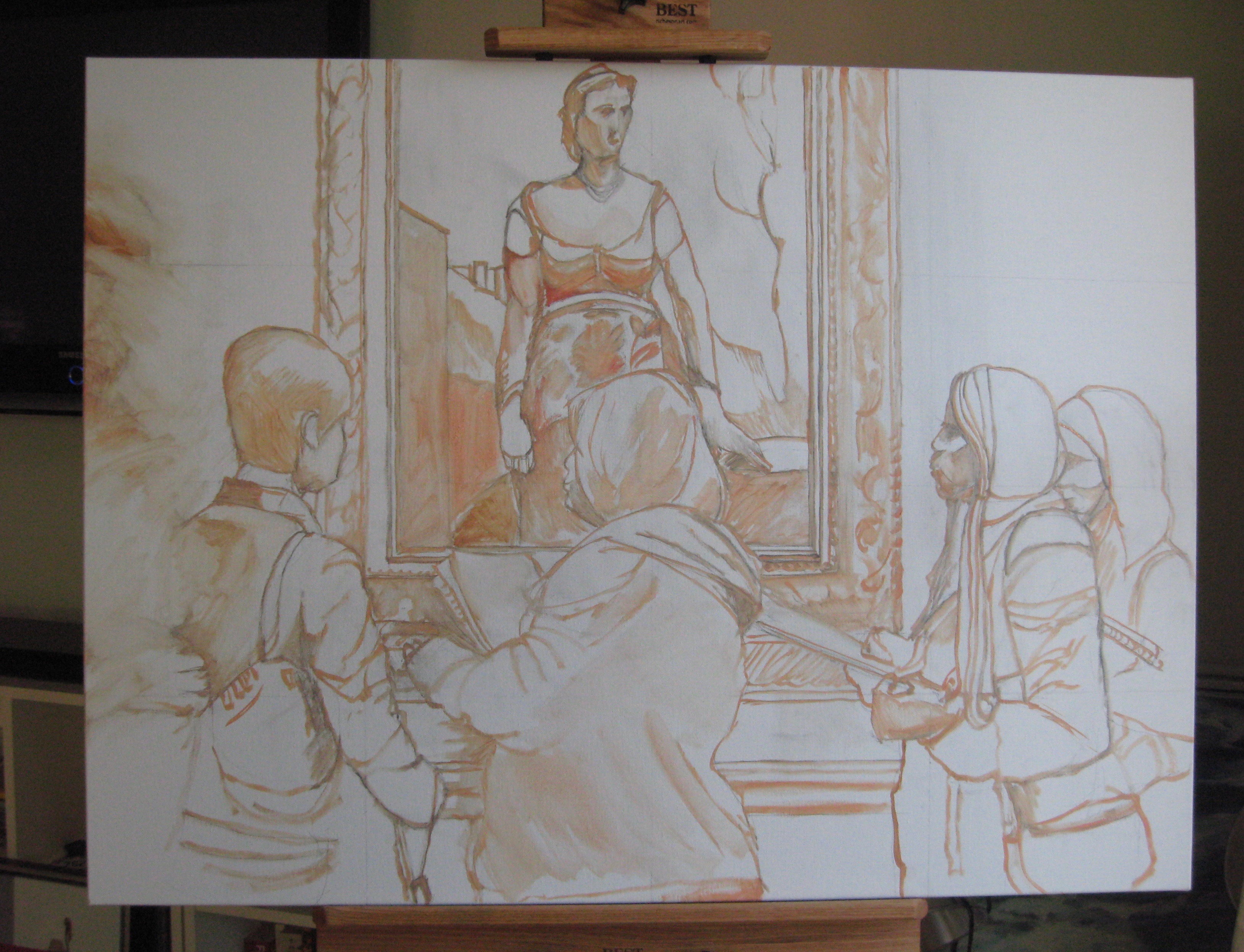 Note: After a quick run back to The National Gallery of Art to look at the work again, I realized I had made Agostina too bright. I went back to my studio and took out some of the Disney princess aspect of my original attempt. Although I don’t pretend to copy the works exactly, I think this version looks closer in mood to the master work.