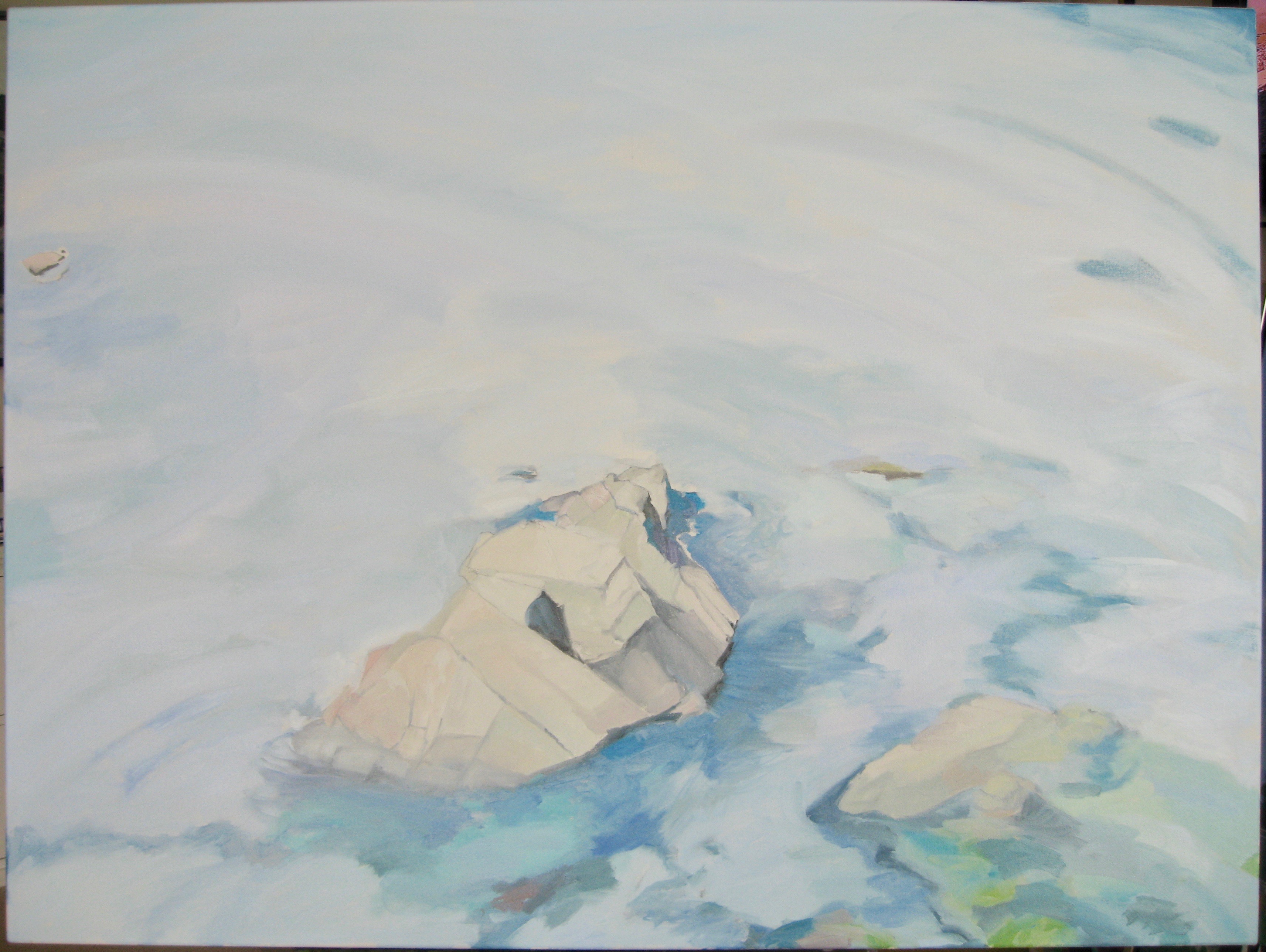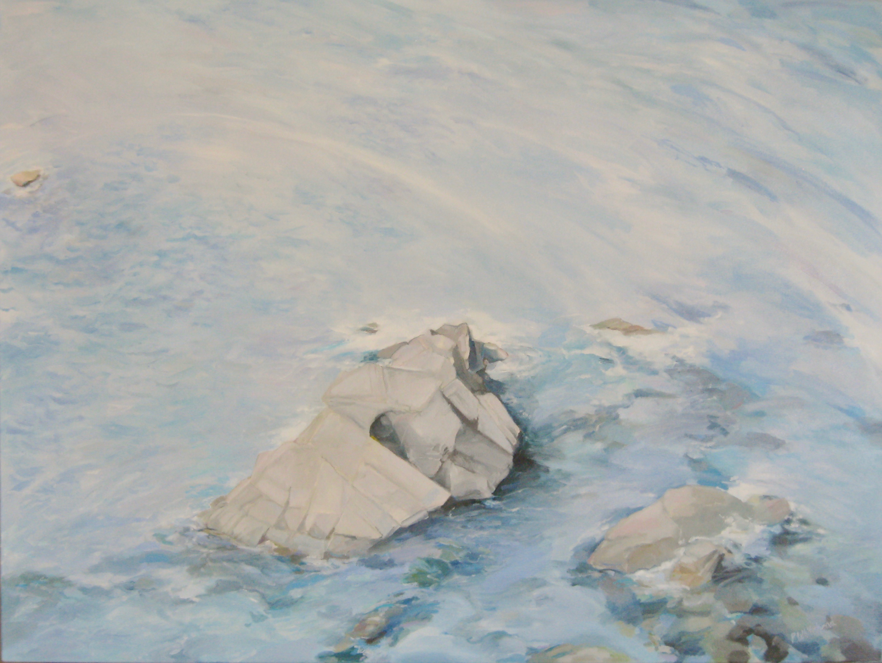 Patterns II started with the client loving a piece they had seen in one of my great galleries that represents me, Gallery 37, in Milford DE.  Having seen one of my wave paintings and loving the style and color patterns, they wanted something larger for their home.  After some back and forth meaningful dialogue, I realized it was the color palette, movement, serenity and the rock formation that had intrigued them in the smaller painting they had seen which was based on a seaside scene in Portugal I had photographed years earlier.