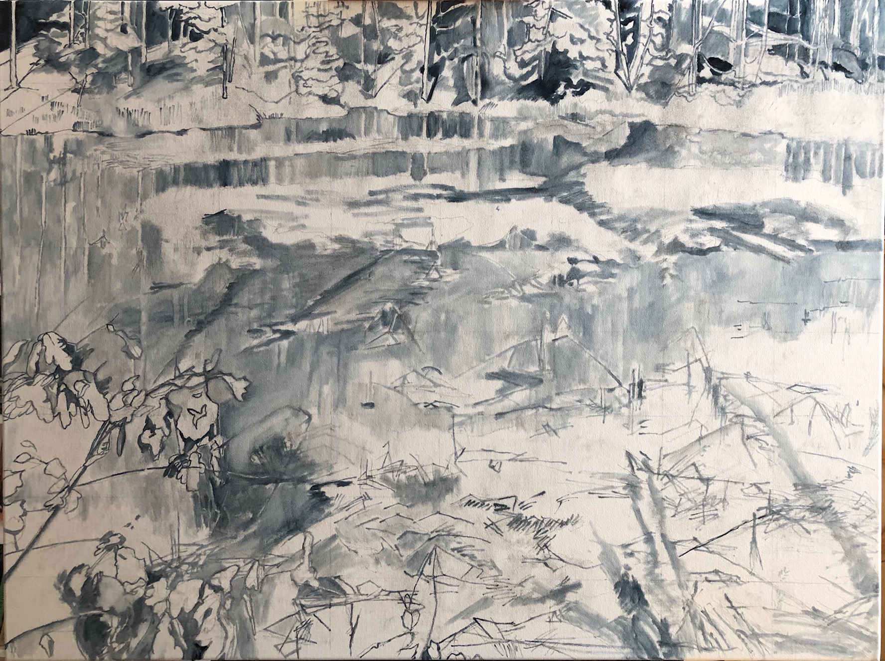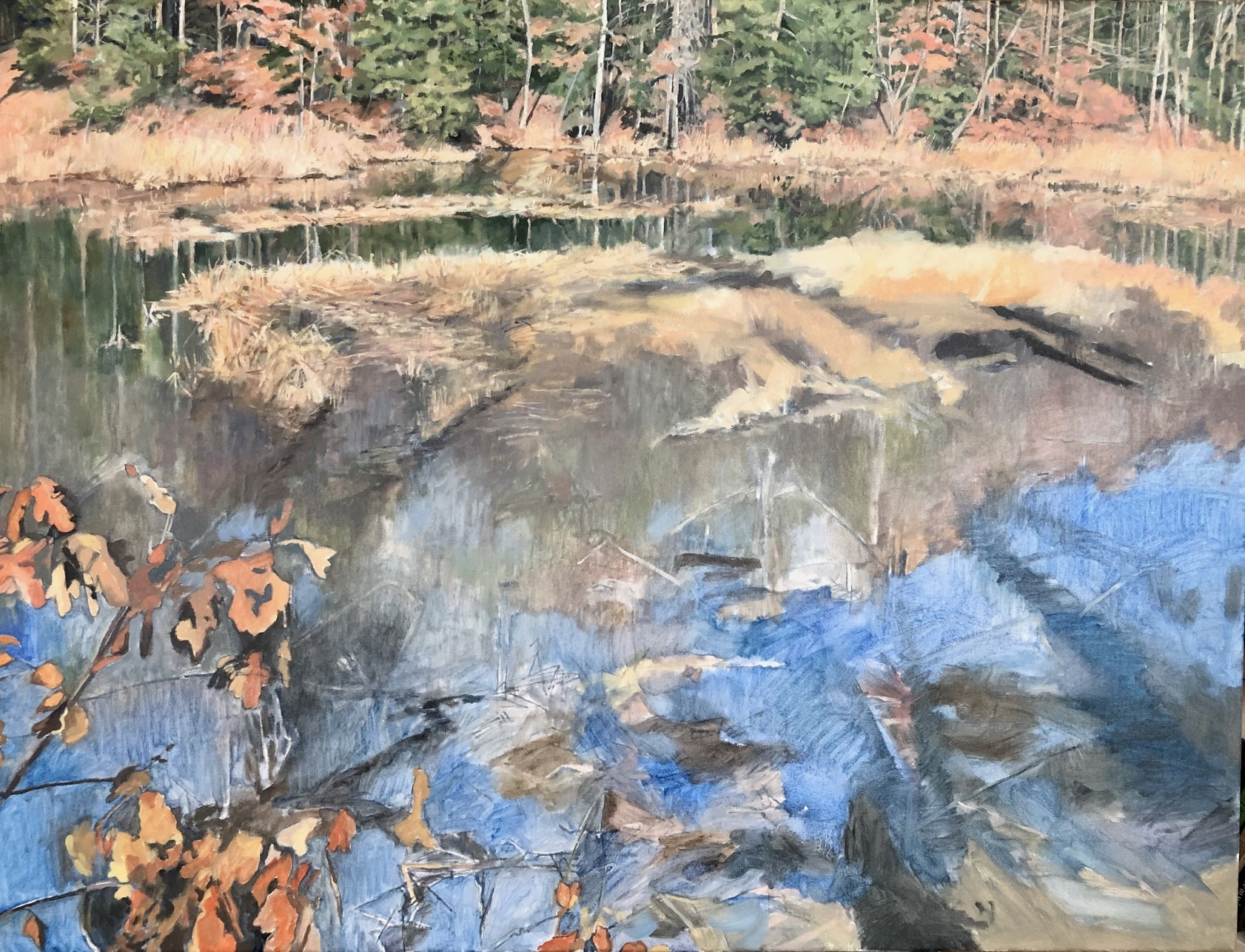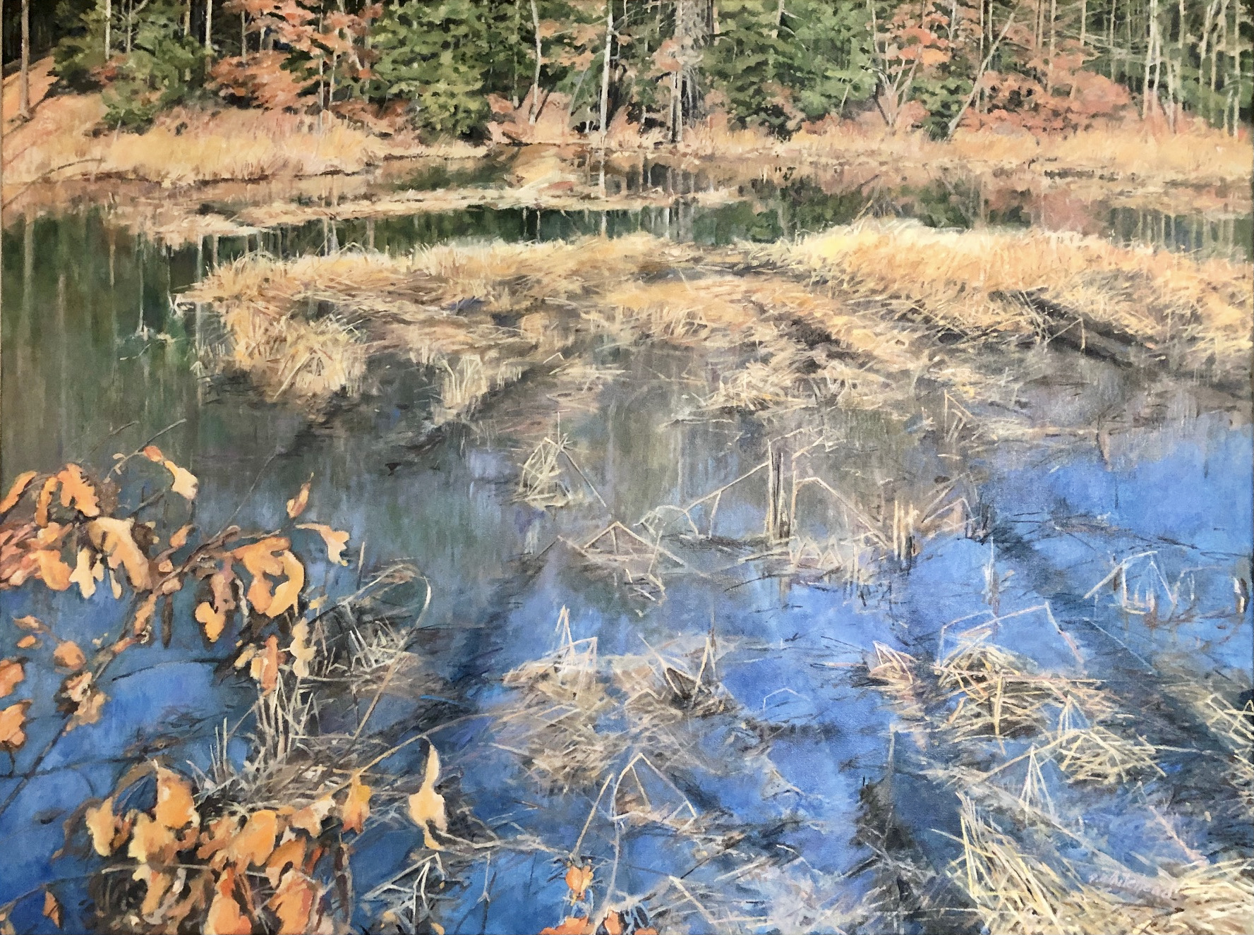 It’s August. Summer is in full heat, and I have spent the past couple of months painting a December scene of one of my favorite wetlands at Mason Neck Virginia State Park. It has kept me cool and calm the past two months of this beastly summer.