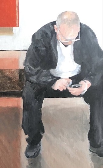 I made real progress on the Met piece, and then the larger canvas came in. I work in layers of color with some drying time between sheer passes, so it was a good time to set one aside and start on the other scene at MOMA.