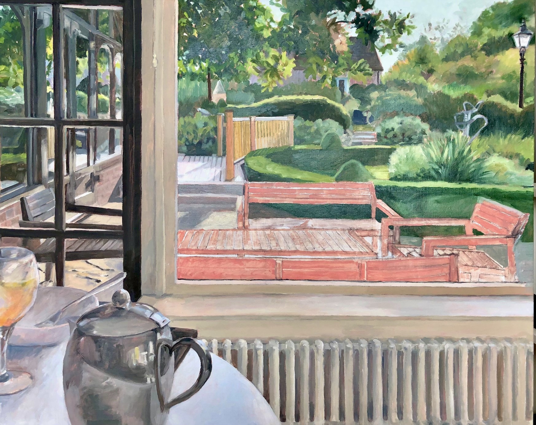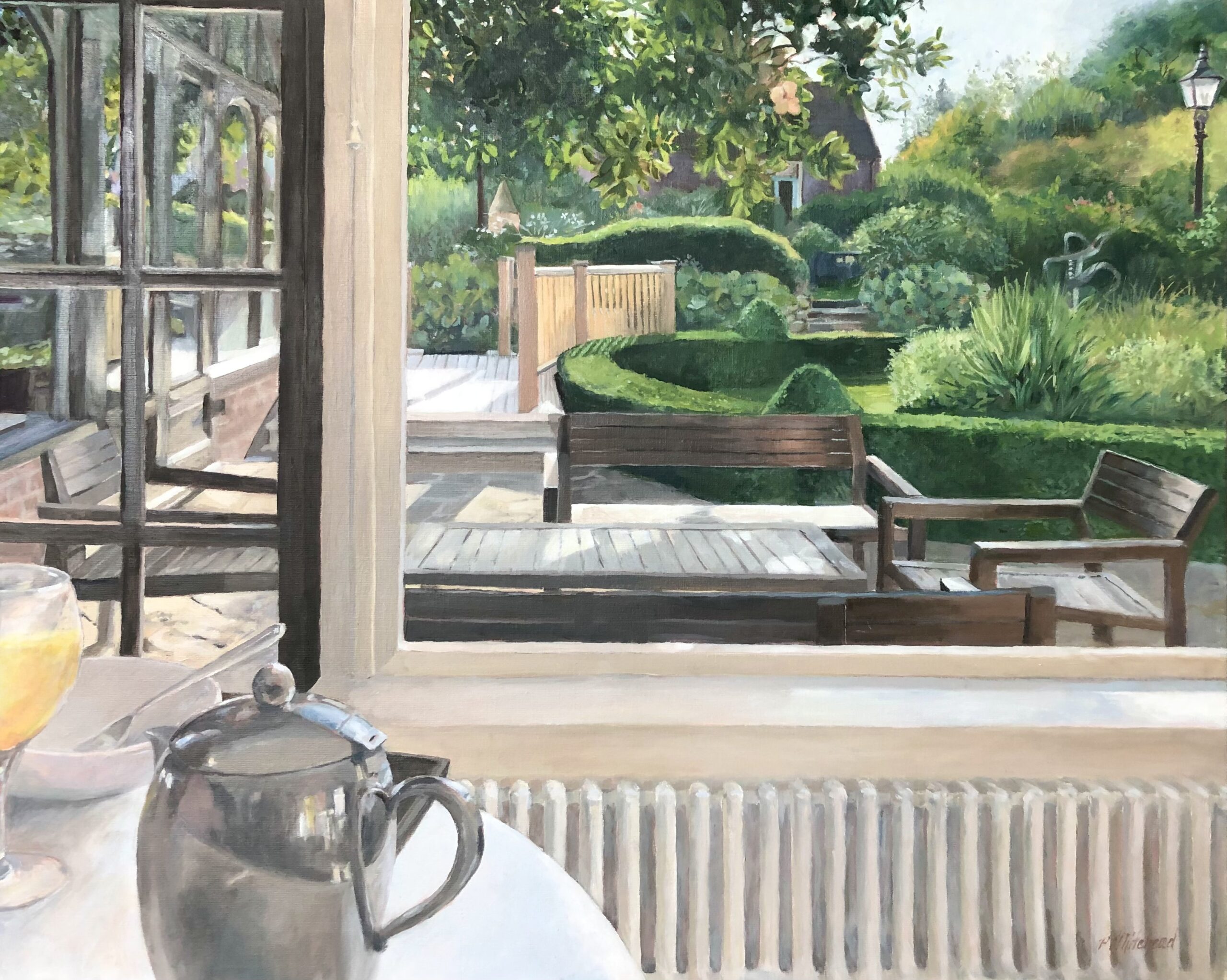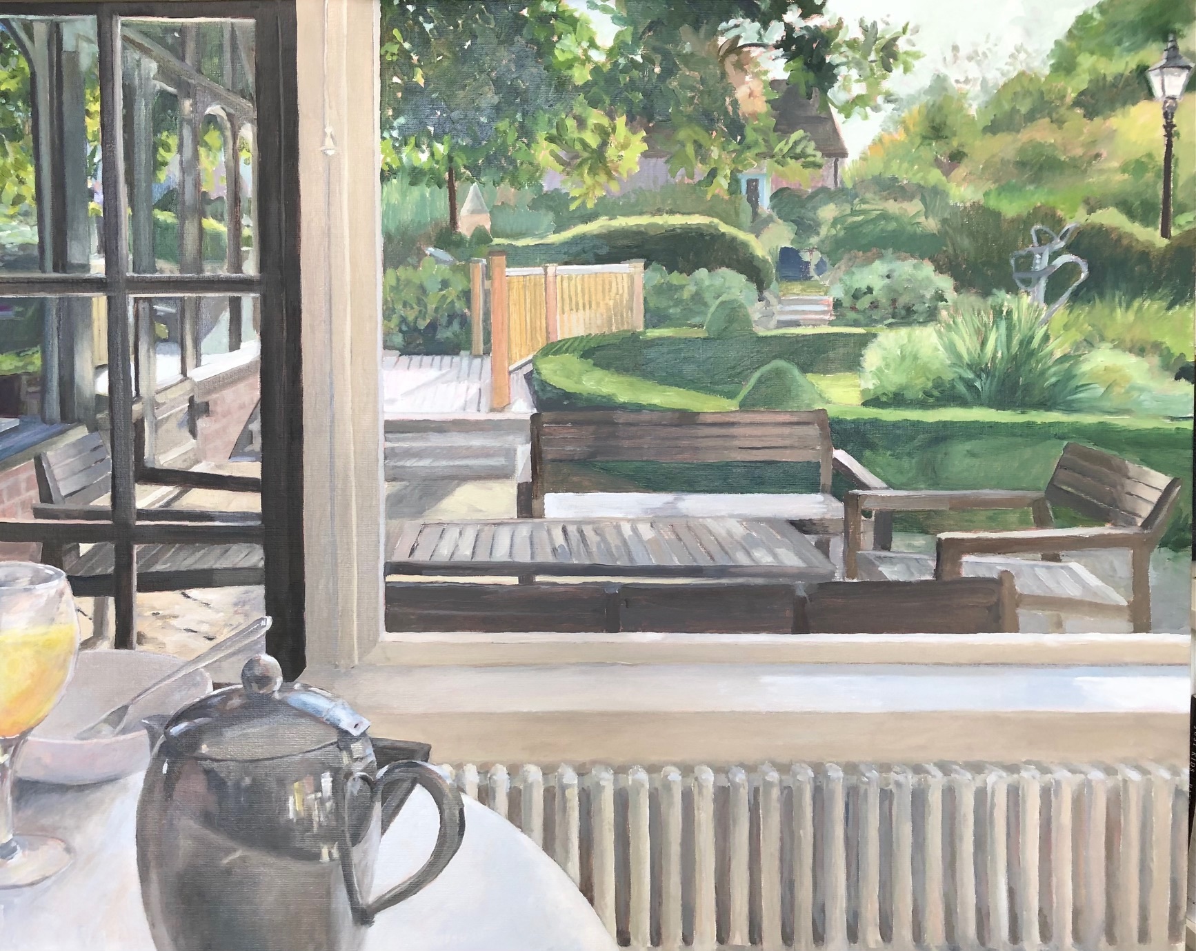 “Morning Tea” The Montagu Arms Country Hotel in New Forest, Beaulieu, England, 30″x24″, oil