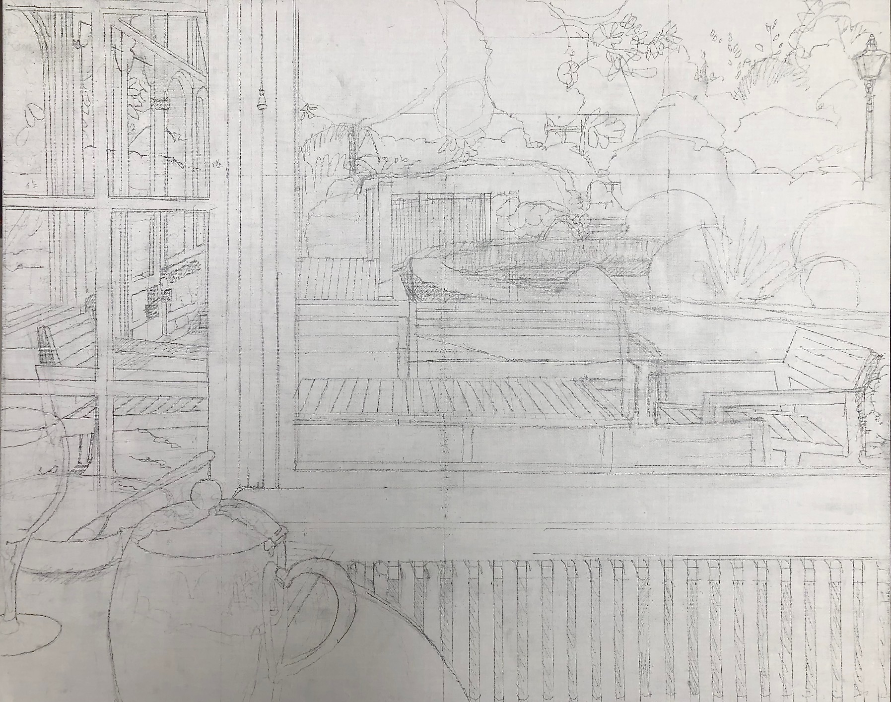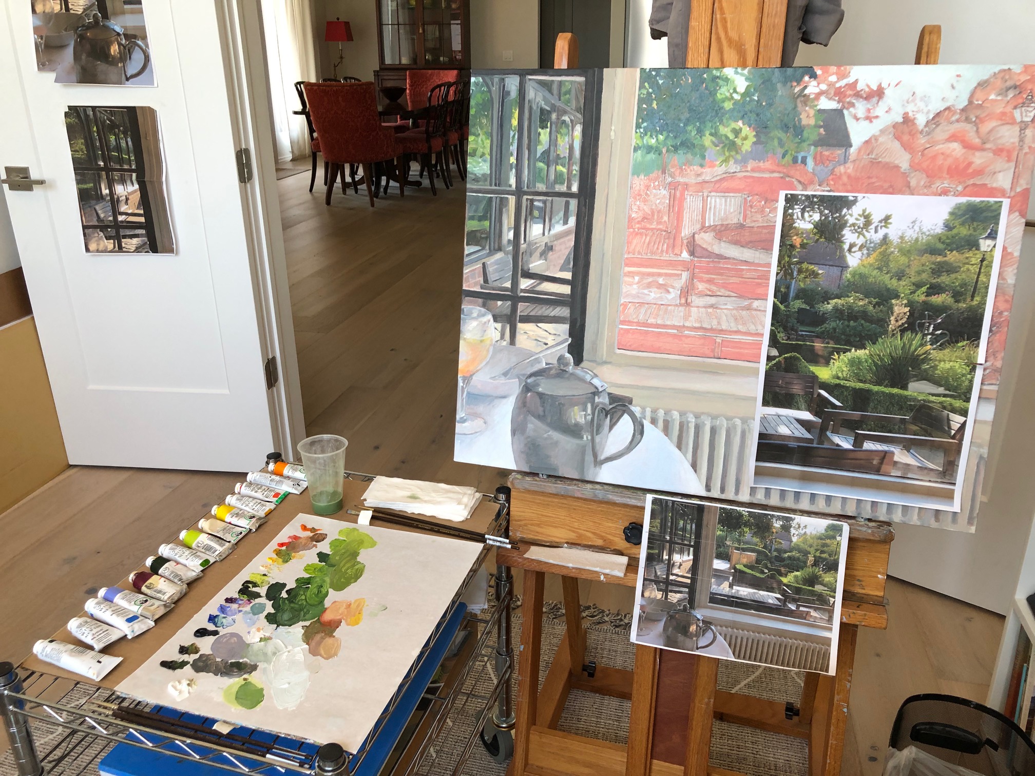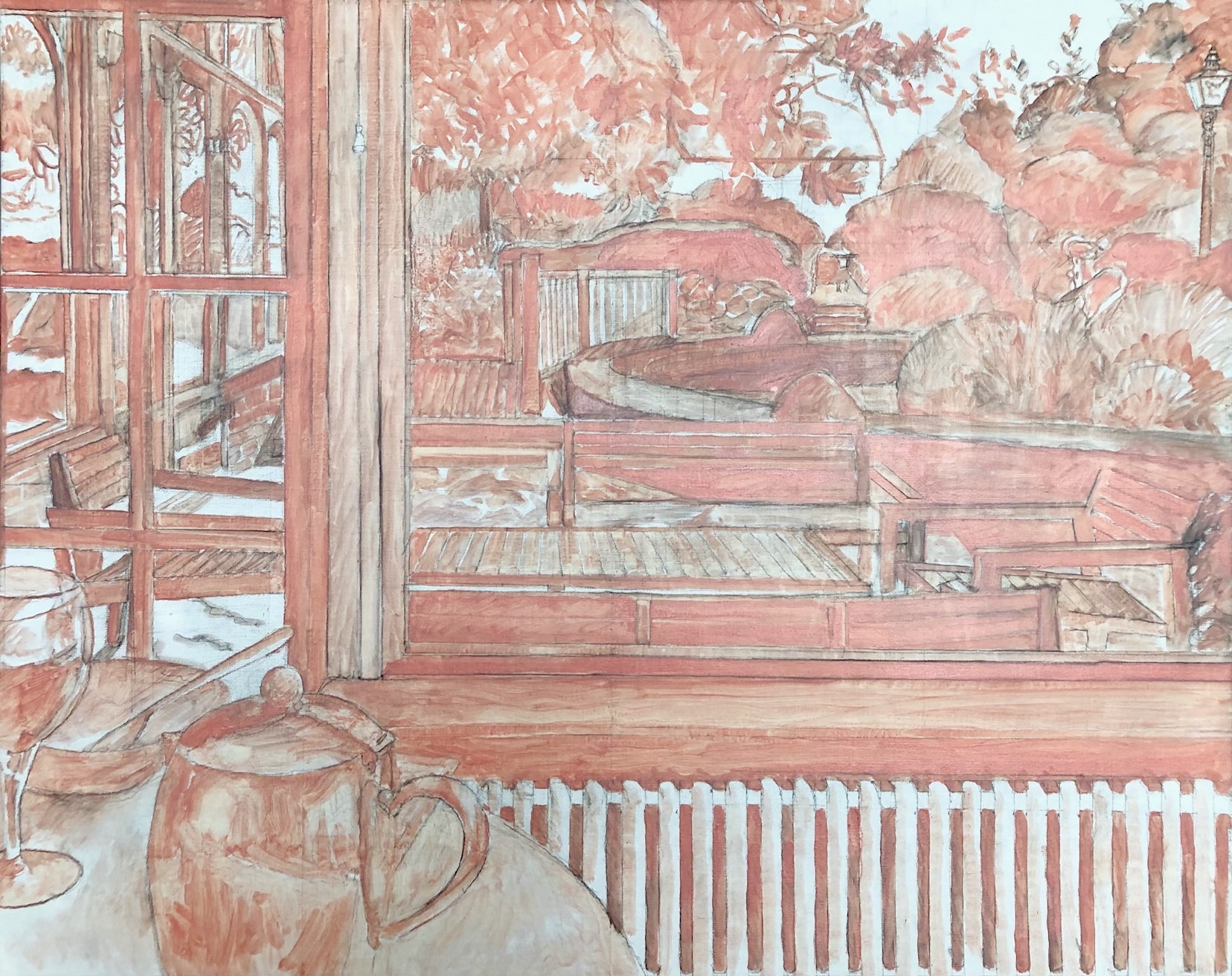 “Morning Tea” The Montagu Arms Country Hotel in New Forest, Beaulieu, England, 30″x24″, oil