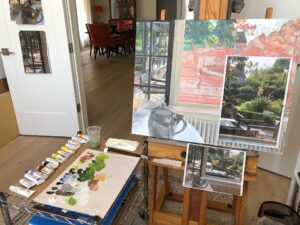 The last week of a painting is spent considering if it is as successful as it can be and what I can do to bring that final spark to it. And, at the same time, I’m thinking about my next canvas. It’s a joy to have this to look forward to most days. There is a real sense of satisfaction at one completed, and anticipation as to what is next. There are always mixed feelings when I have finally finished a painting and move on.