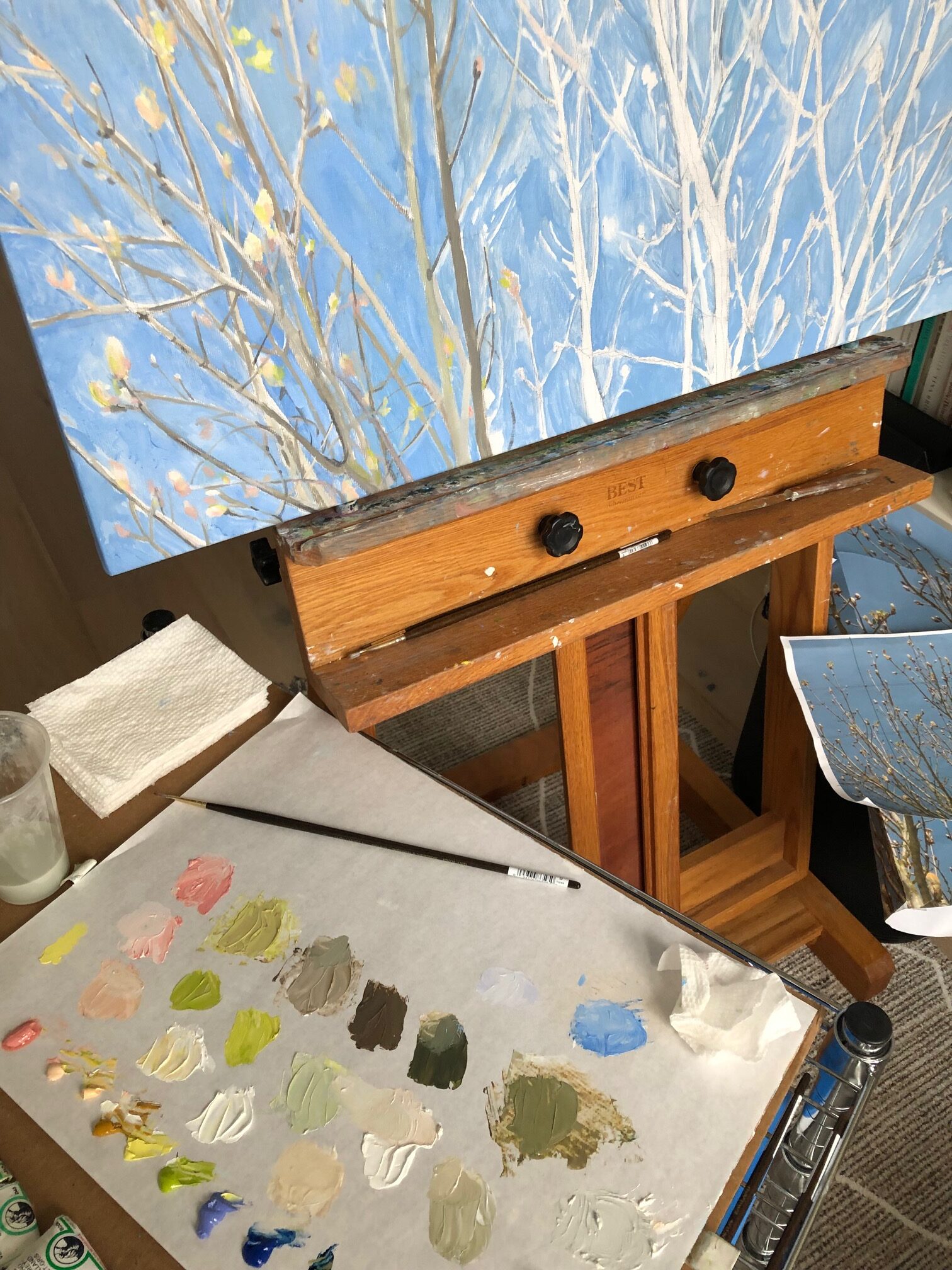And just as spring begins here outside my window, I finish. I love this painting. I love having it in my studio for awhile as it dries and settles .