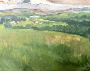 I made real progress on the Met piece, and then the larger canvas came in. I work in layers of color with some drying time between sheer passes, so it was a good time to set one aside and start on the other scene at MOMA.