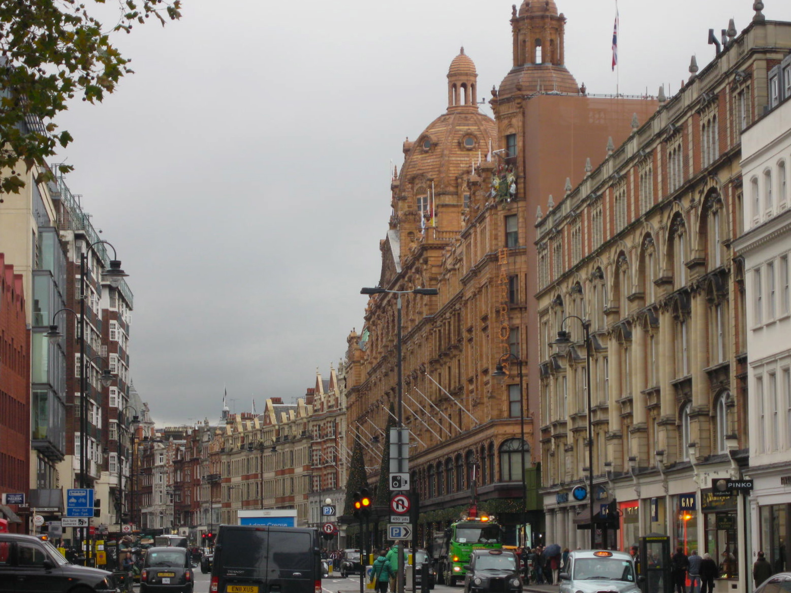 Harrods on a busy Saturday — the Christmas season has begun in London. Photo by me.
