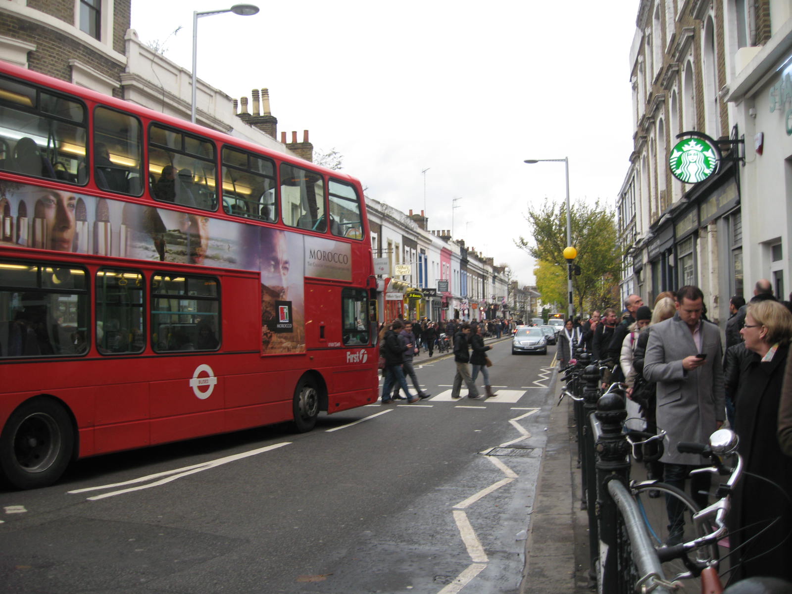 The Portobello Road market website’s directions say to go to Notting Hill Gate Underground stop, and follow the crowds. they weren’t exaggerating. Photo by me