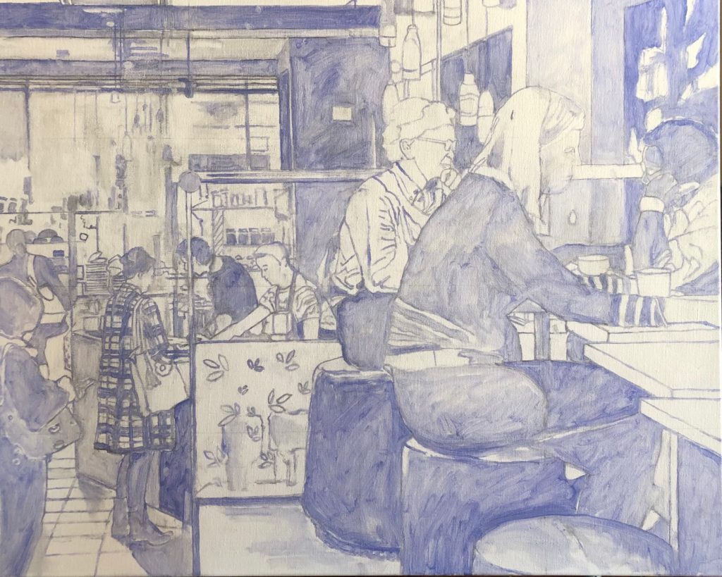 I love this painting for so many reasons. It recalls the perfect day with my sisters after the long covid year. I got to see my youngest sister’s world beyond her public one. And I got to relive it all again in this painting.
