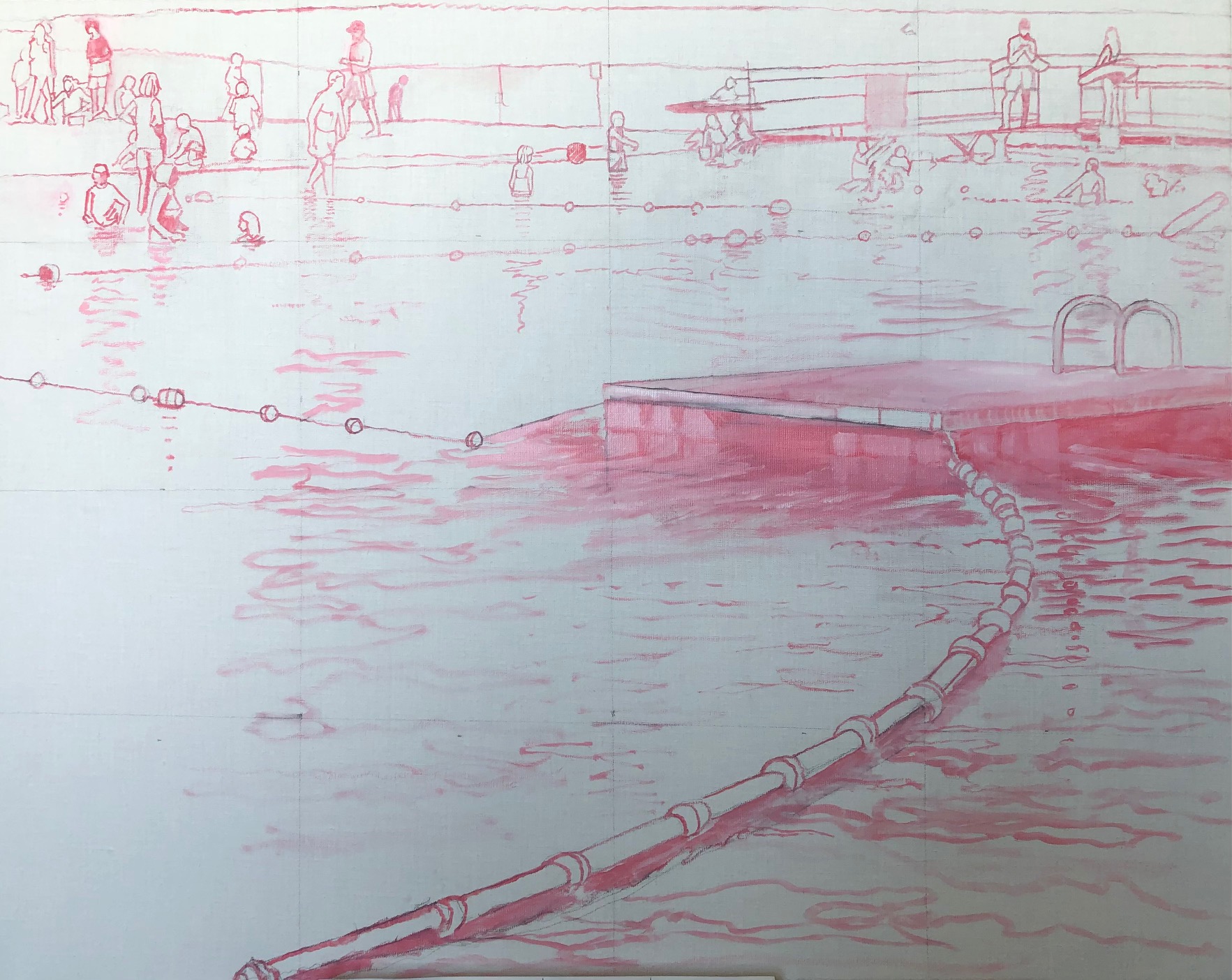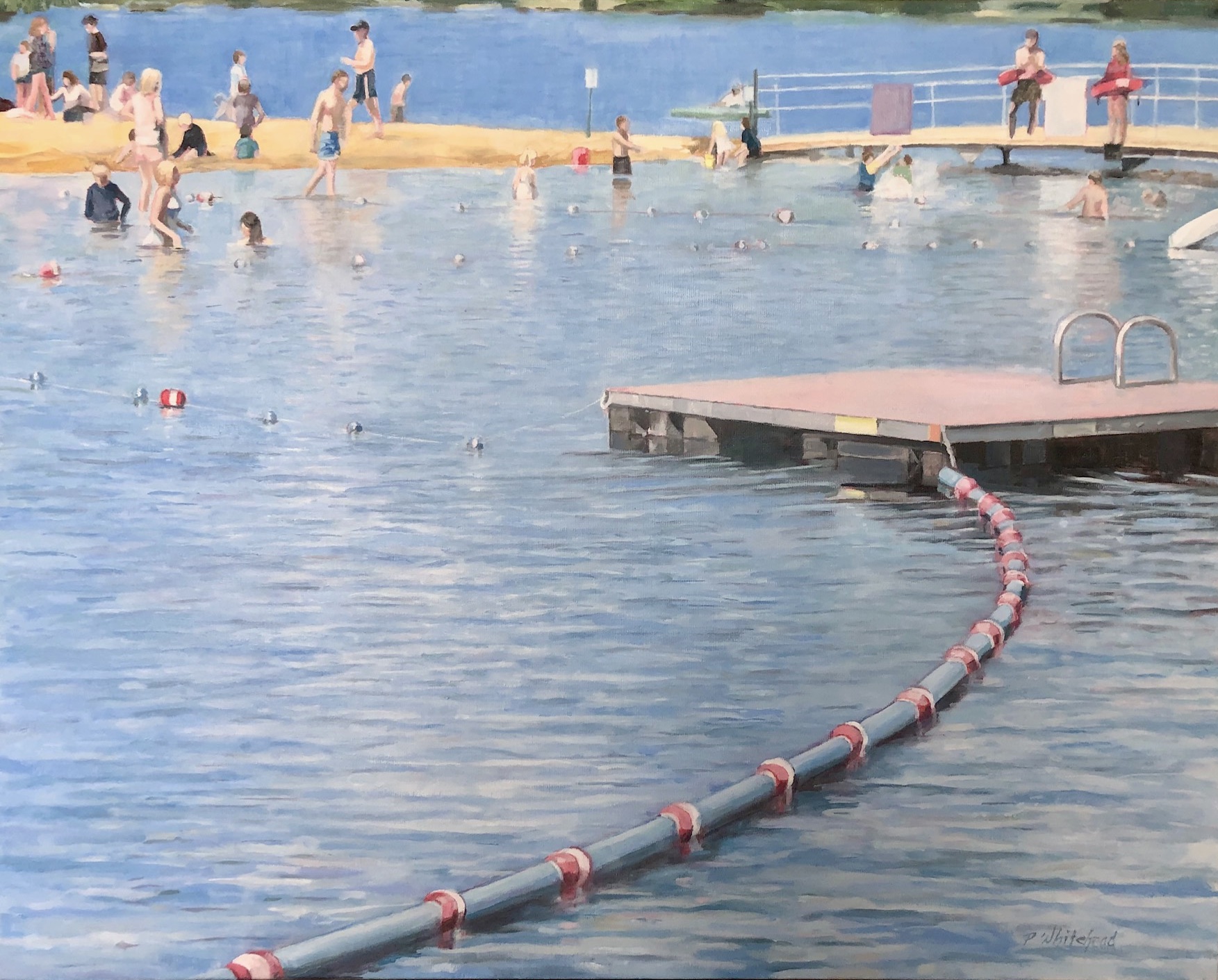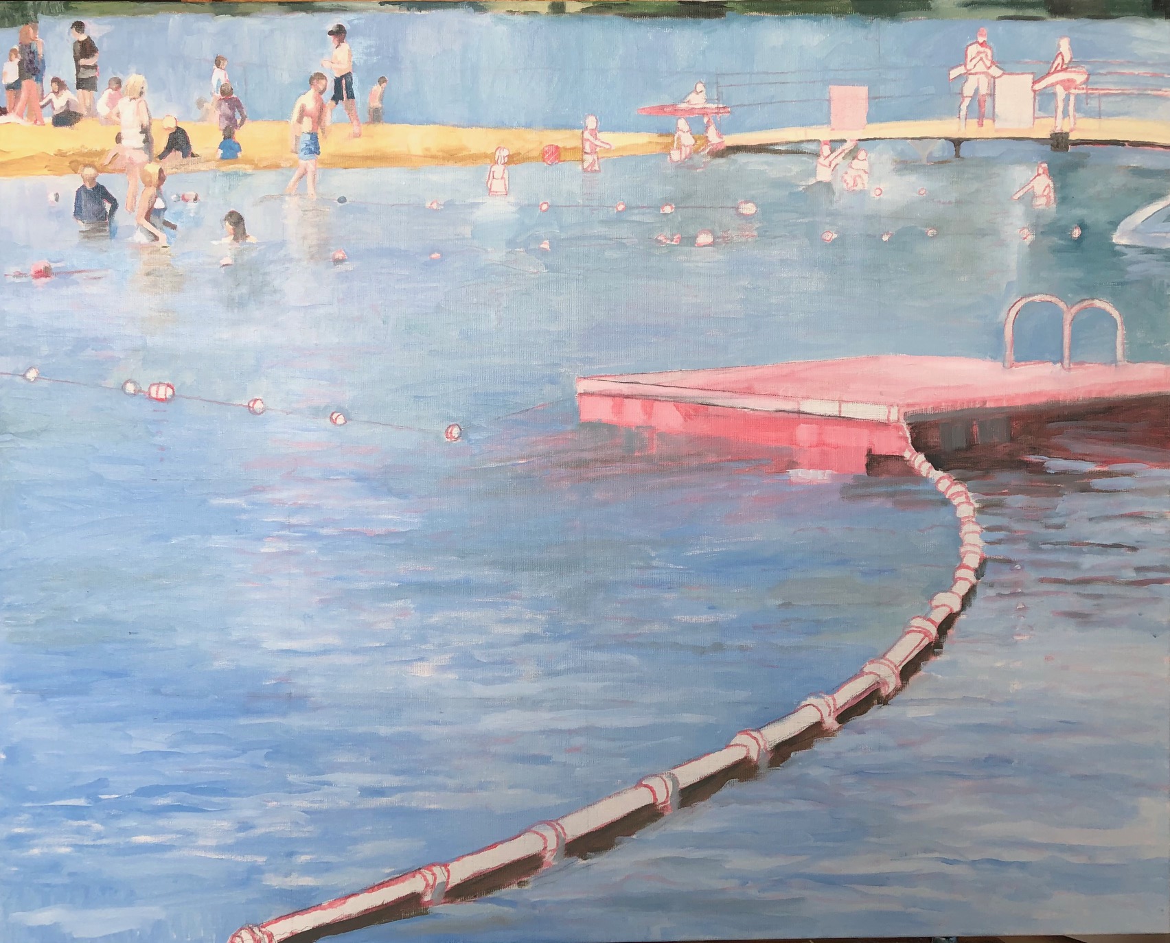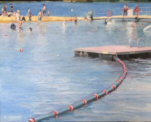 This was a tough one. I wasn’t sure how I wanted to crop the scene. Whether or not to put someone on the float. Or jumping in to the water from the float. Could the float be the star, but not compete with the patterns of the water? I knew I wanted a variety of swimmers to be at the back of the “stage”.