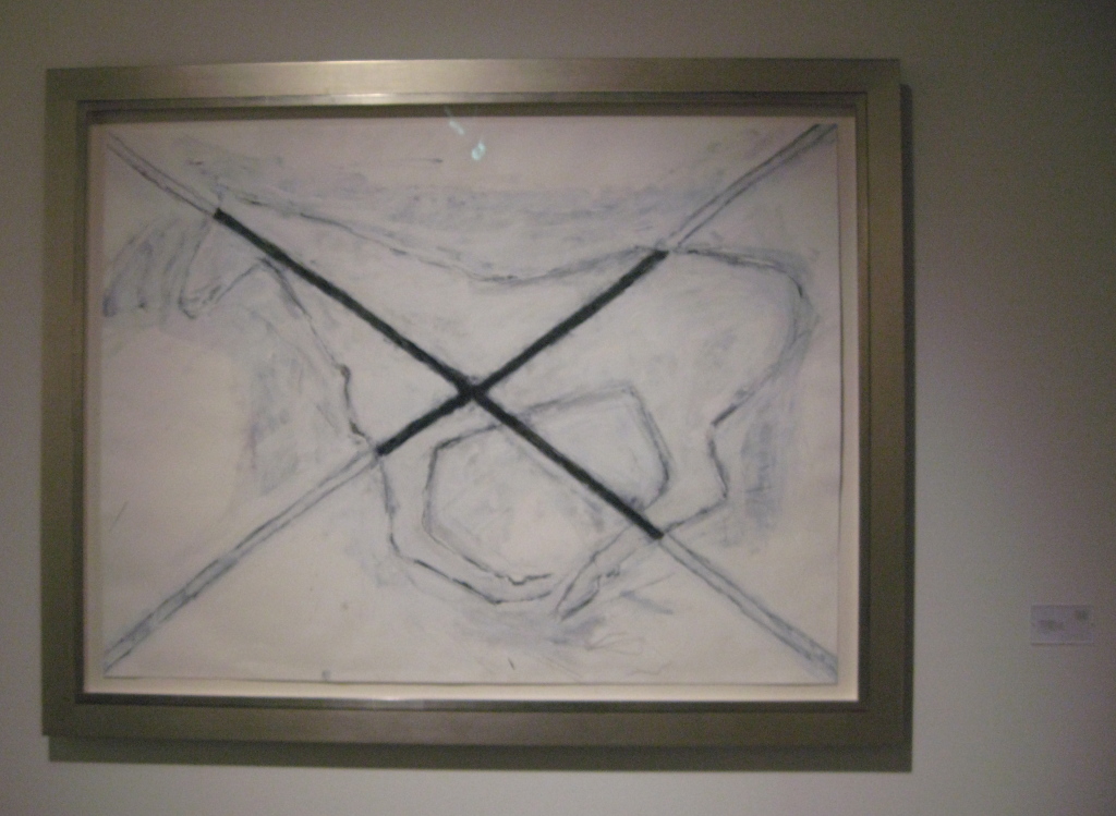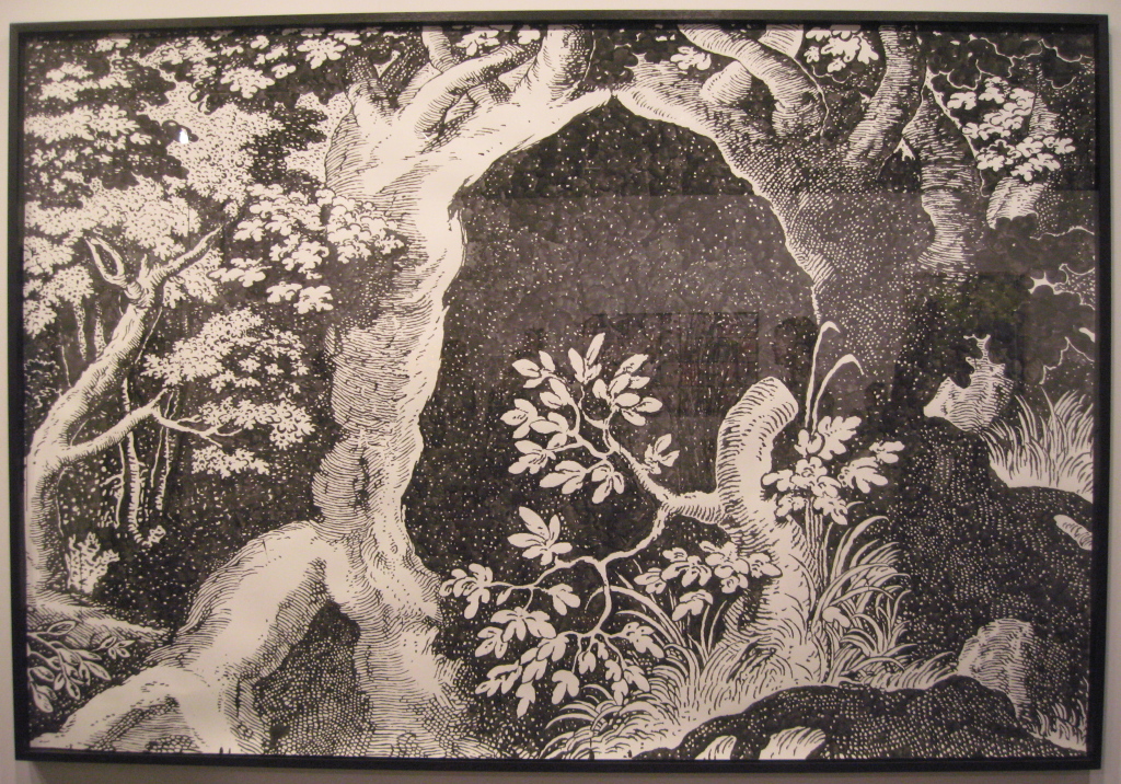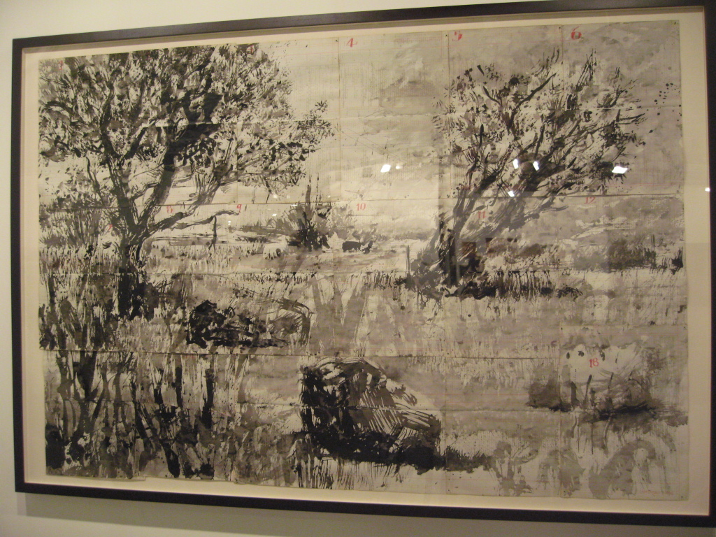 The monochromatic nature theme persisted. This huge piece is charcoal on paper (with me reflected in the glass).