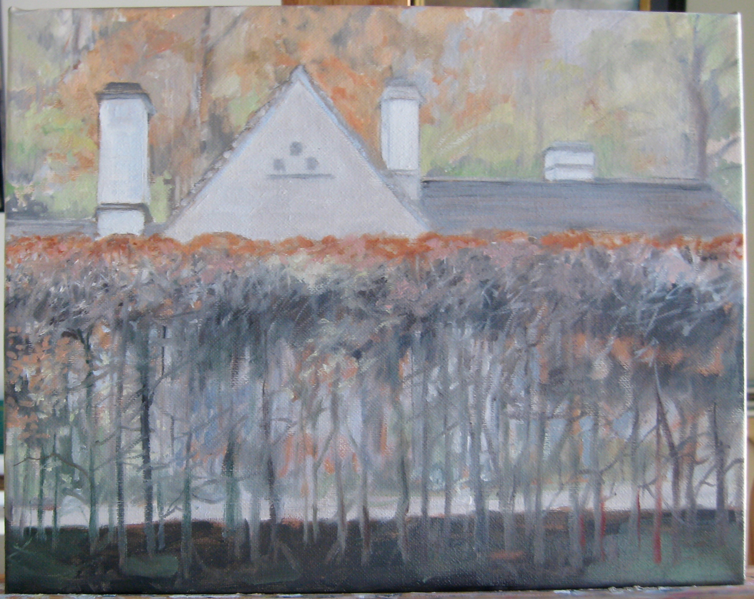 “Behind the Hedge”, 14 x 11″, oil on linen