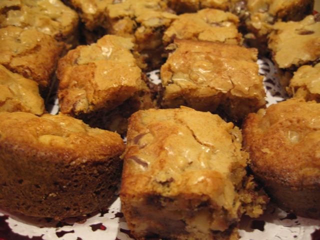 Christmas just would not be Christmas without baking sweets in the kitchen for weeks before the actual holiday arrives. Since I was in my early 20s, I have baked for Christmas. For days, and then for weeks. And one of my go to classics is something called “Congo Bars”, a sweet confection with brown sugar, walnuts and semi-sweet chocolate chips.