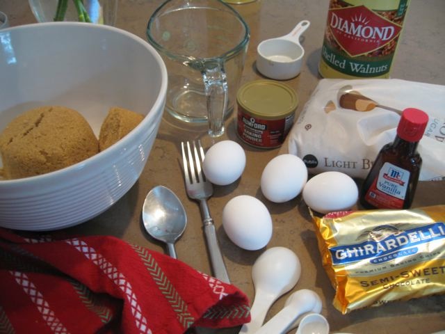 Christmas just would not be Christmas without baking sweets in the kitchen for weeks before the actual holiday arrives. Since I was in my early 20s, I have baked for Christmas.  For days, and then for weeks. And one of my go to classics is something called “Congo Bars”, a sweet confection with brown sugar, walnuts and semi-sweet chocolate chips.