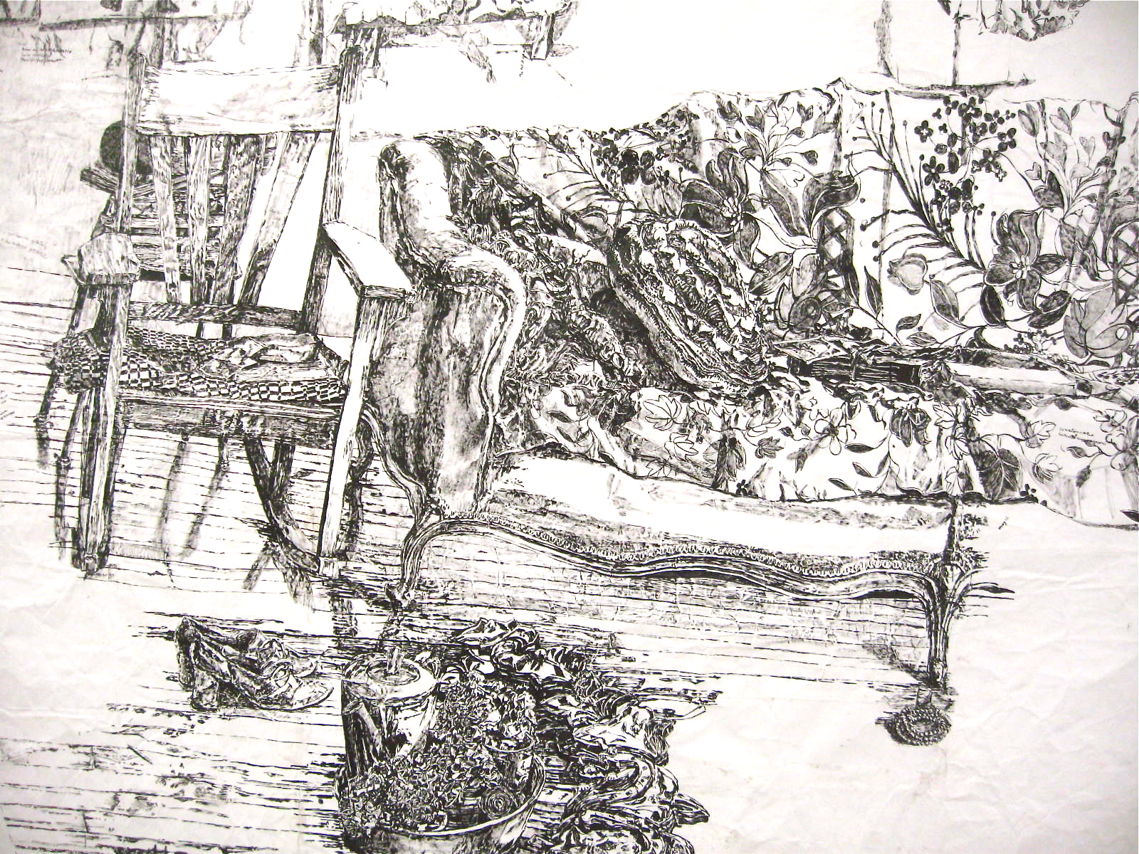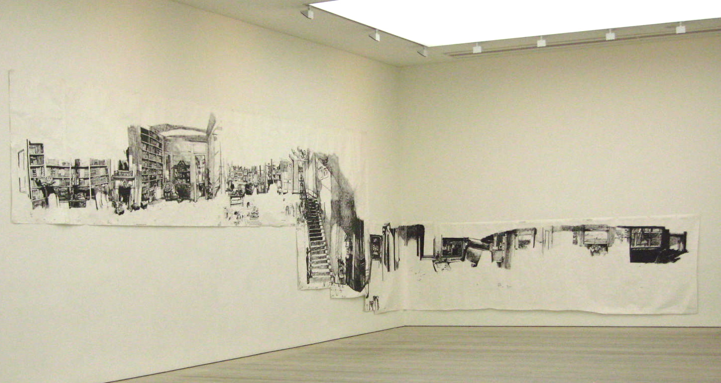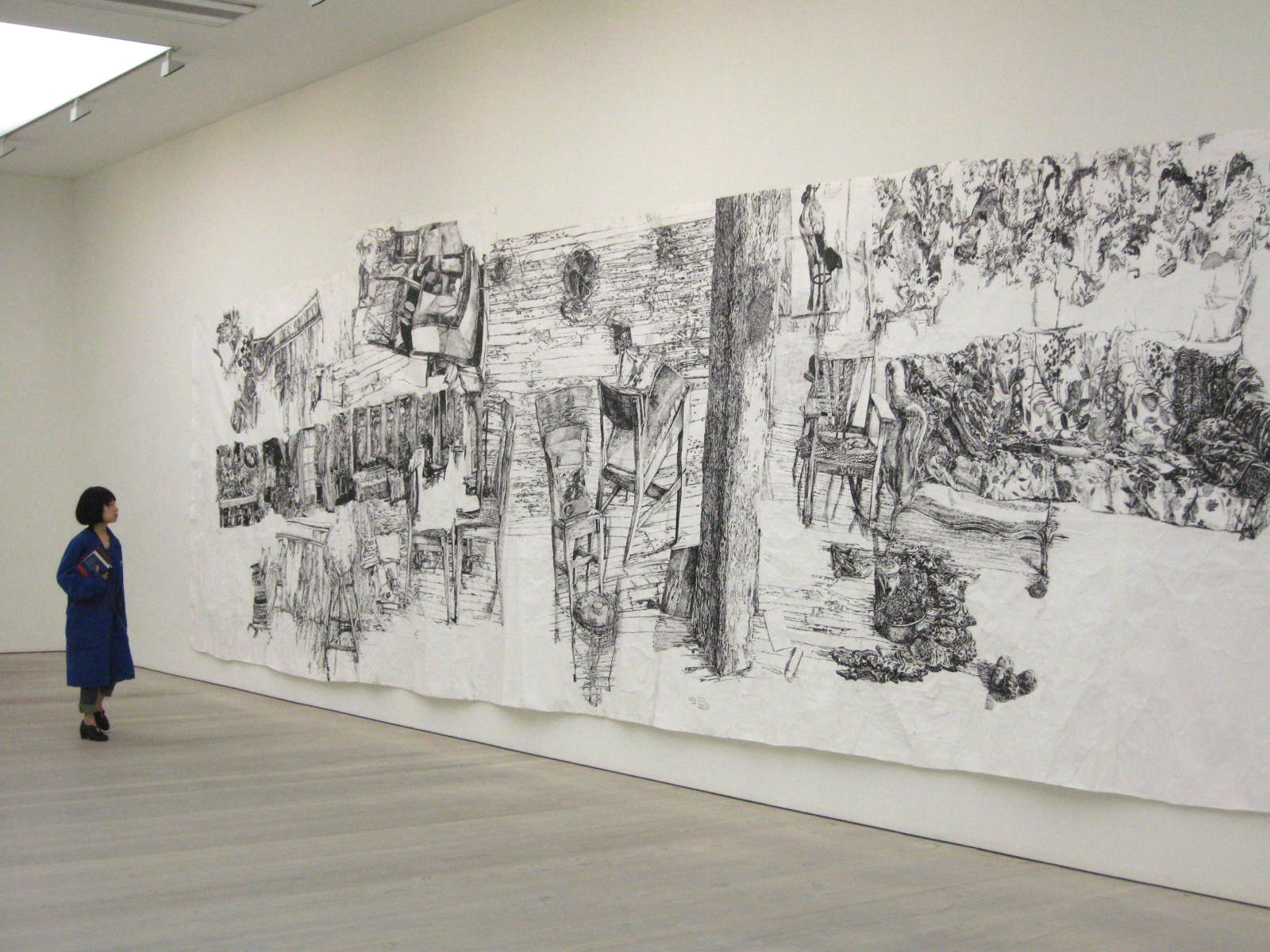 It was fantastic. I found several exhibits in the many galleries that were exciting and original. In the very first gallery was Dawn Clements, and she filled the large room with her sumi ink on paper.