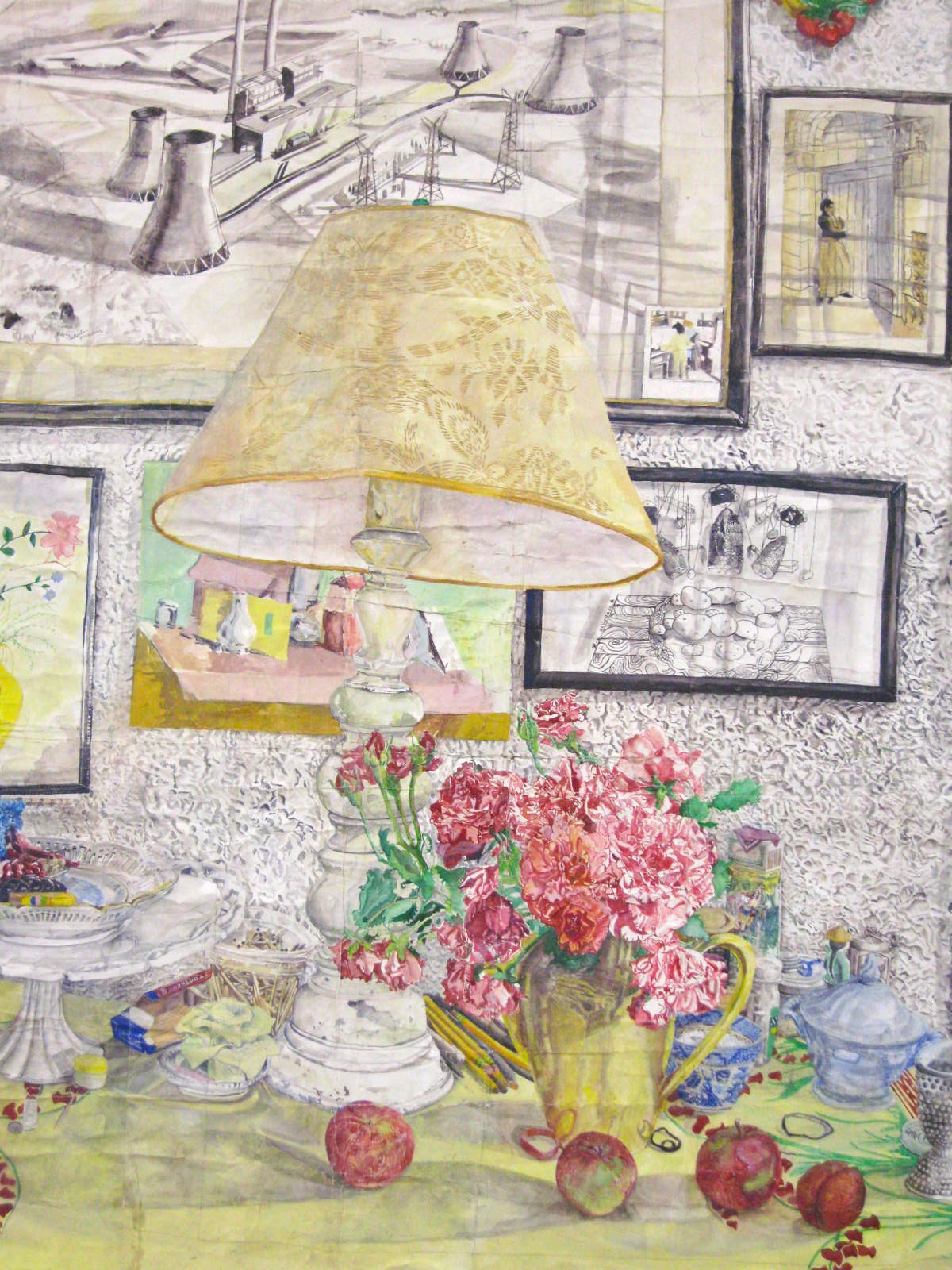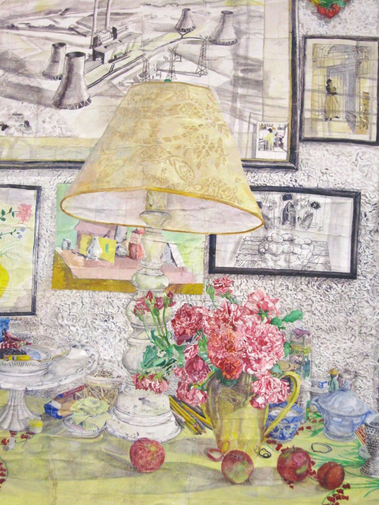 Storm Tharp’s ink gouache and colored pencil on paper was interesting, but a bit too depressing for me.