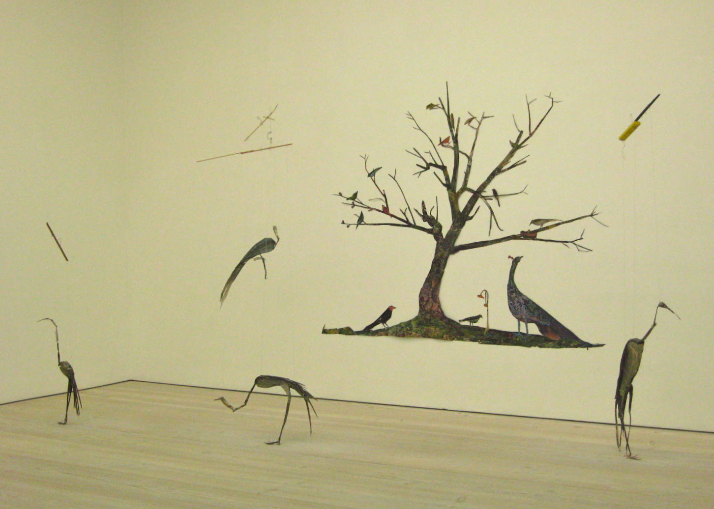 It was very large and juxtaposed next to the delicate bags even more impressive. The artist was intrigued by birds, and his use of materials was delicate but strong.