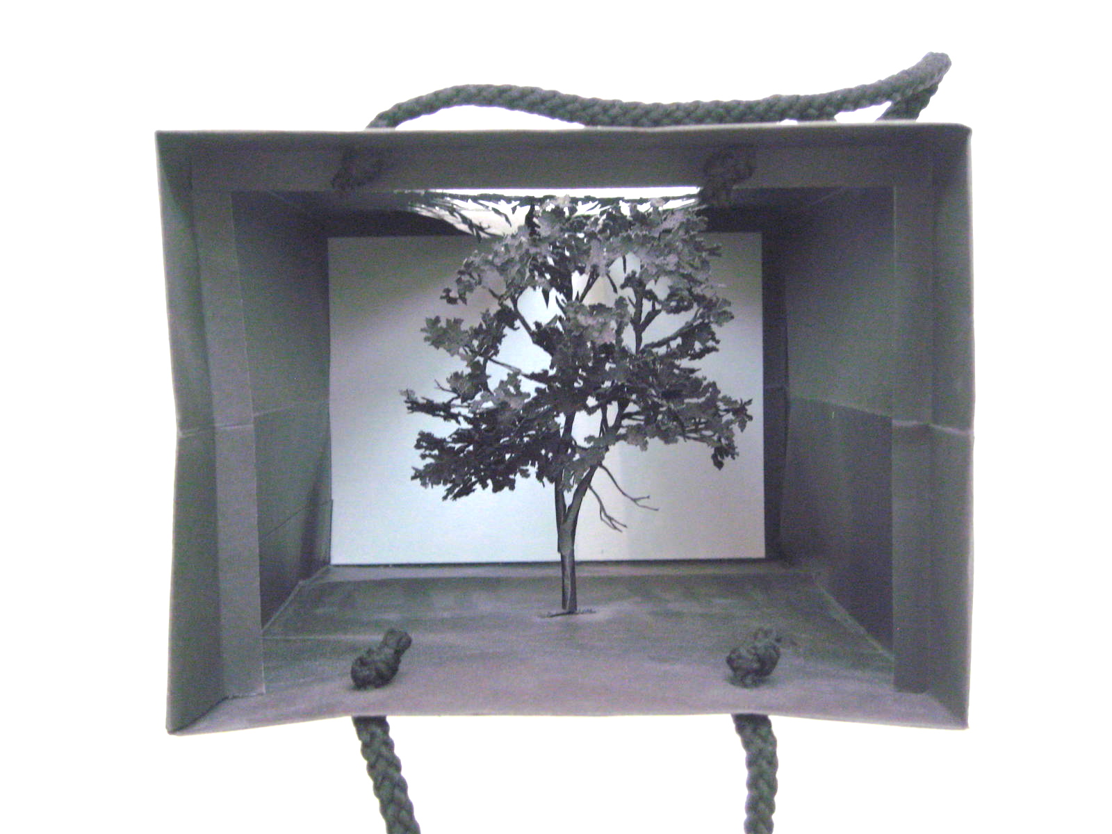 …the leaves had been cut from the top of the bag displayed, leaving a patterned hole for the light to come in.