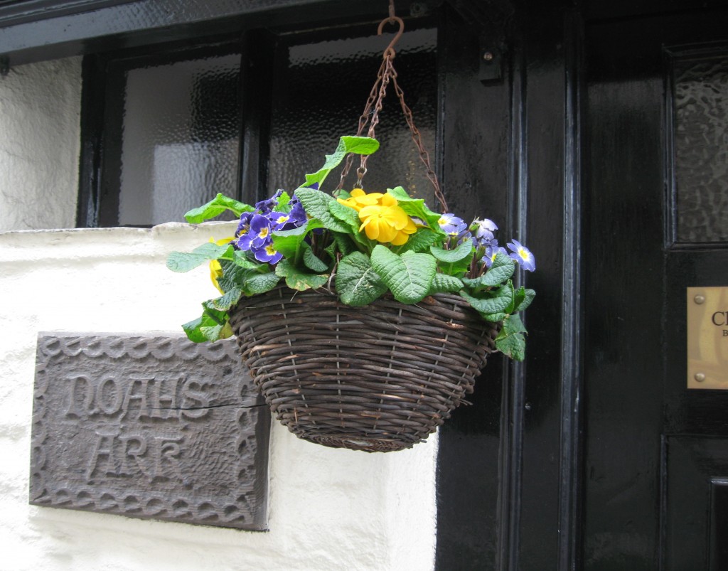 A creative flower display in Fowey, Cornwall, England on the southwest coast. Photo by me