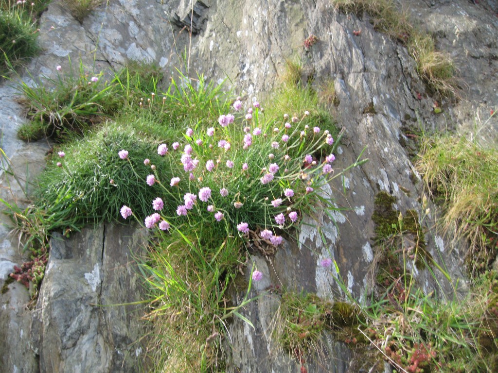 I think they get their inspiration from the rock walls nearby.  With all the rain, flowers grow anywhere. It really is special to see.
