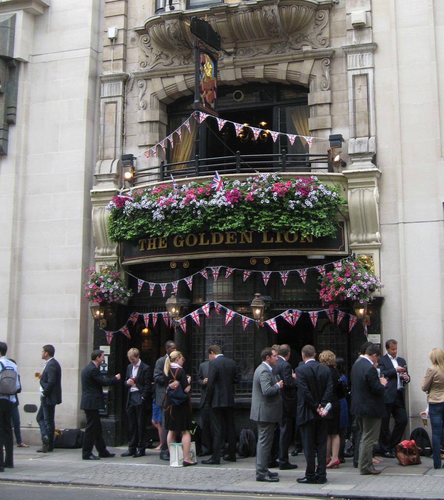 Happy hour on a Friday afternoon made happier by the flowers over head. Photo by me