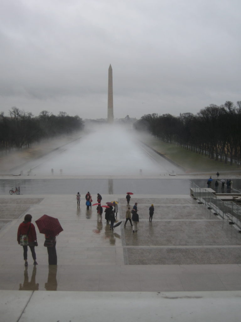 As luck would have it, it had been cold for weeks, but all of a sudden it was warmer and had a misty rain in the air creating dramatic fog effects everywhere. As I crossed the pedestrian paths near the mall, I was thrilled to see colors and light that was interesting and different from the normal “postcard” DC scenes.  Perfect. What I thought would just be a thinking photo session, showed real results.