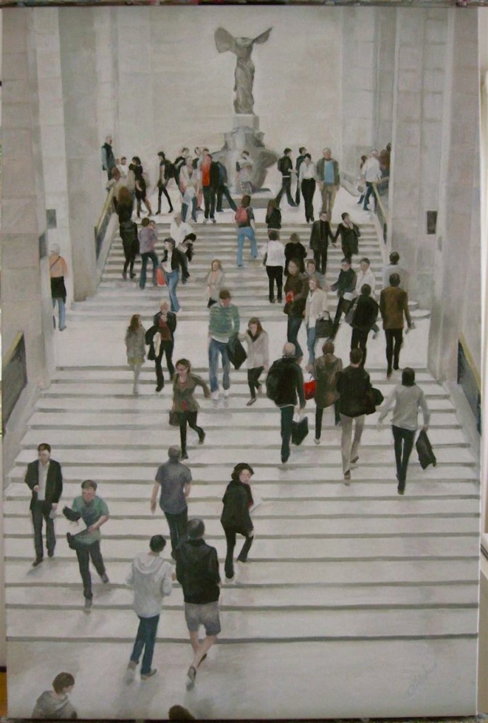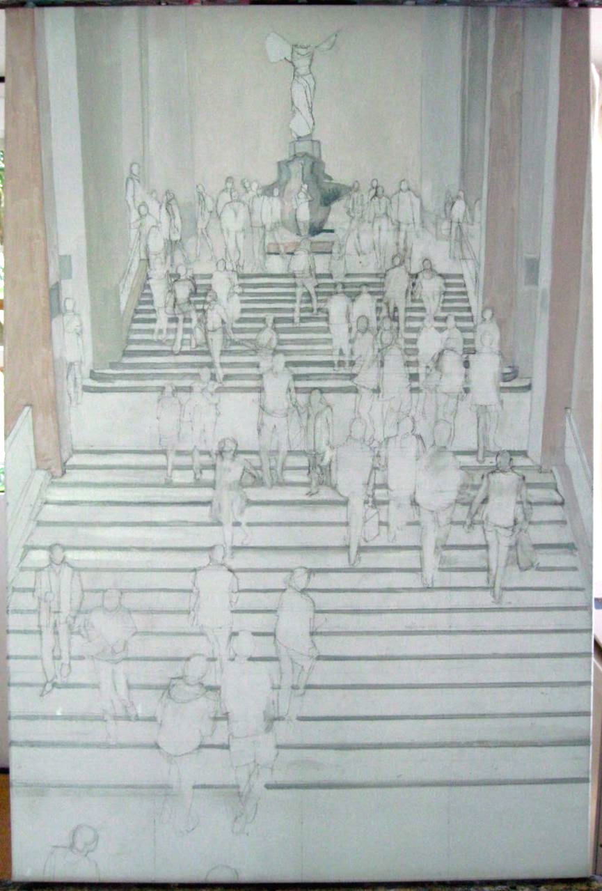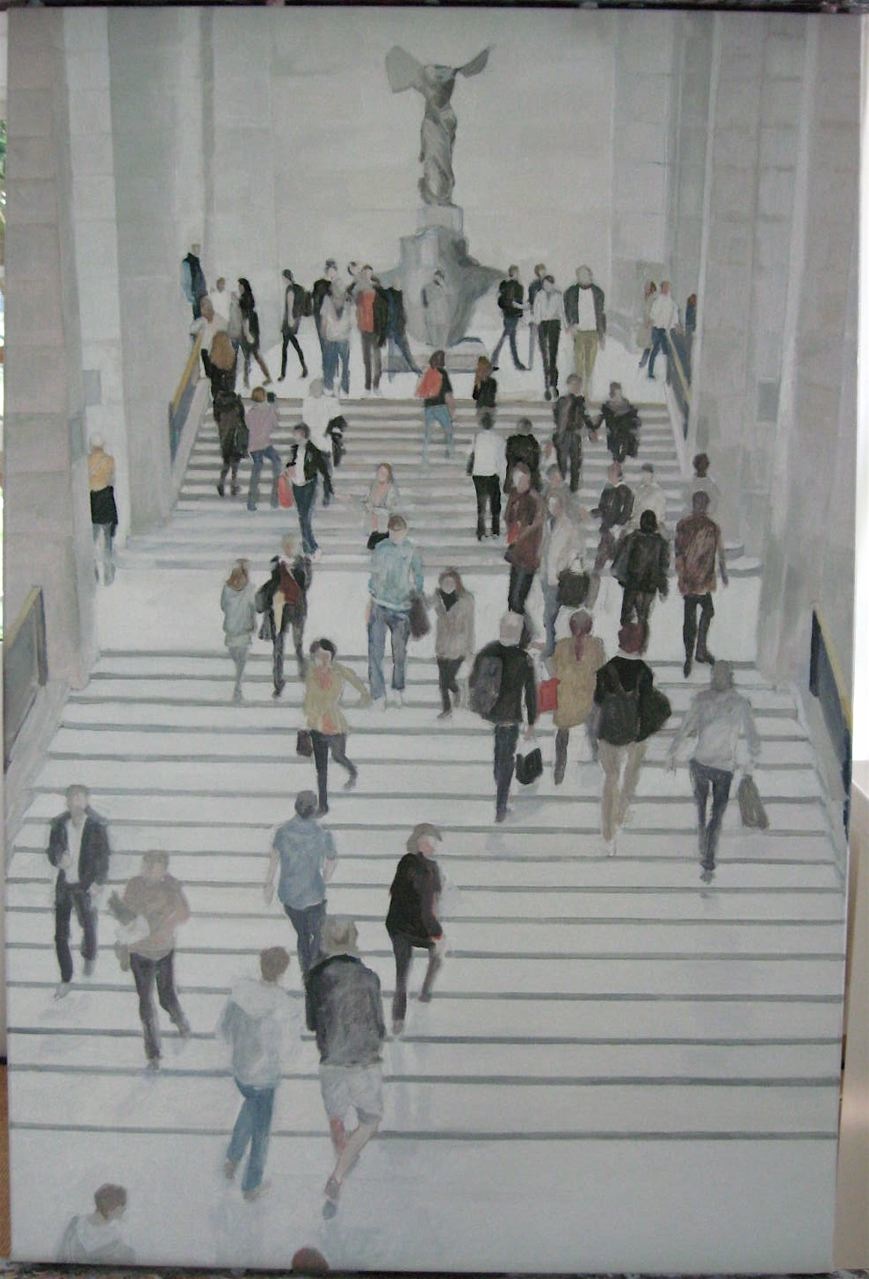 It has been a long, hot and humid summer. Finally, I am happy to say, we are moving in to autumn. For the last few months, I have been working in the studio on two canvases that I think of as companion pieces. The inspiration for both was taken from my last visit to The Louvre in Paris and the most dramatic entrance to a museum wing ever…the steps leading up to the Winged Victory.