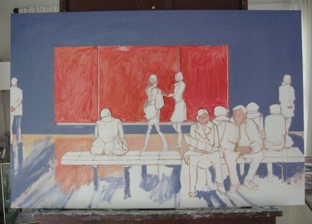 I liked the two women in the background, nearest to the painting. The one on the right has stopped to look at the huge canvas and motions to her friend to stop also.