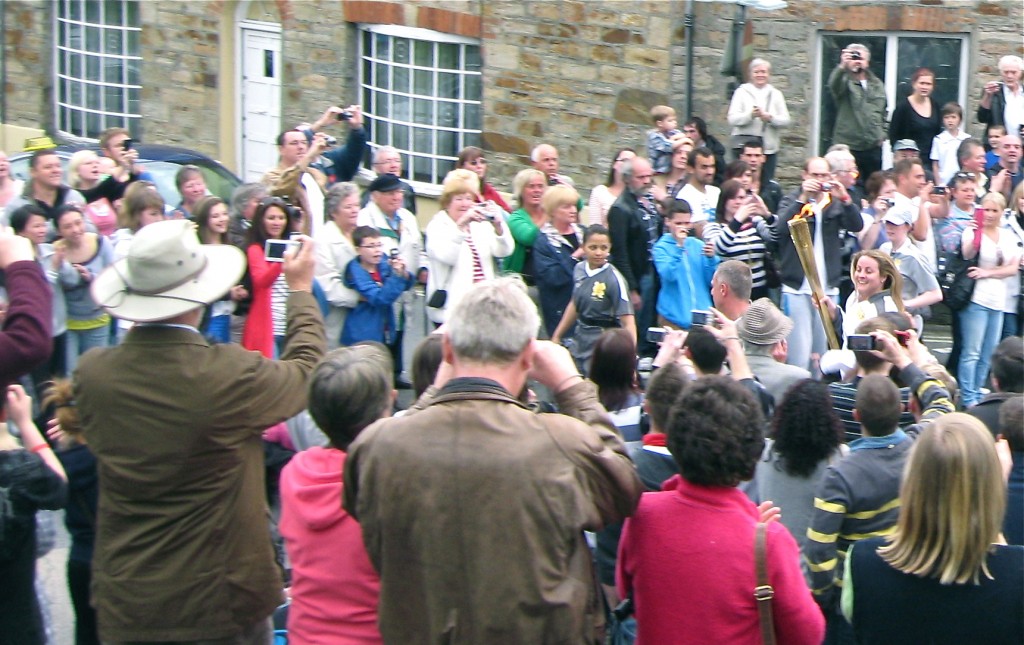 After arriving at Heathrow totally bedraggled, we decided to spend our Saturday driving towards Cornwall where we needed to be by Sunday to meet up with family. With frequent breaks and even a catnap in the car at a rest stop, we hit the really pretty part of Dartmoor Forest in Devon and decided to start looking for an Inn to spend the night. Of course, we had no idea that the Olympic Torch had landed at Lands End to the west of us by helicopter from Greece that morning, and was making its way through the area on the very first day of its journey, and ours, on English soil.
