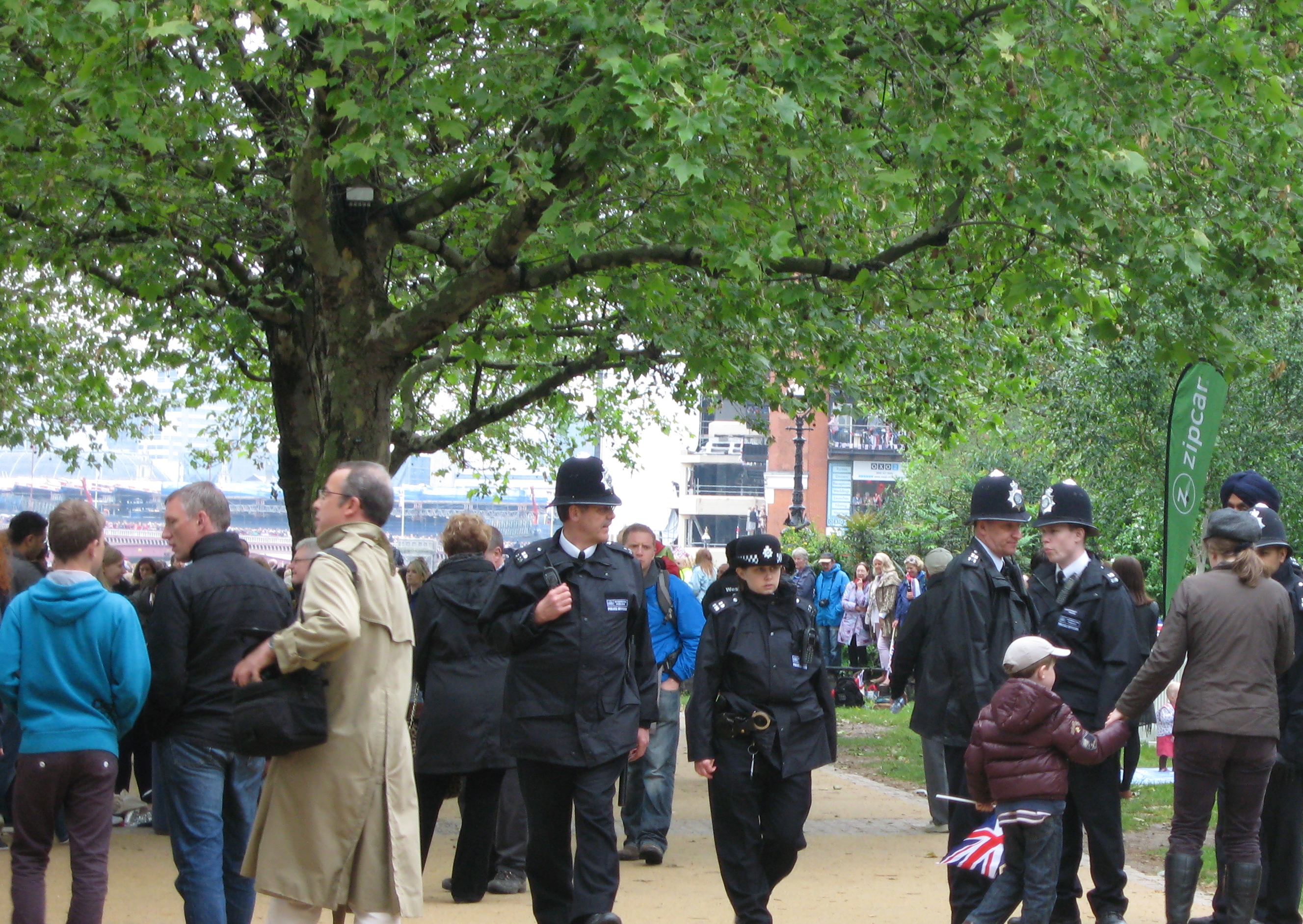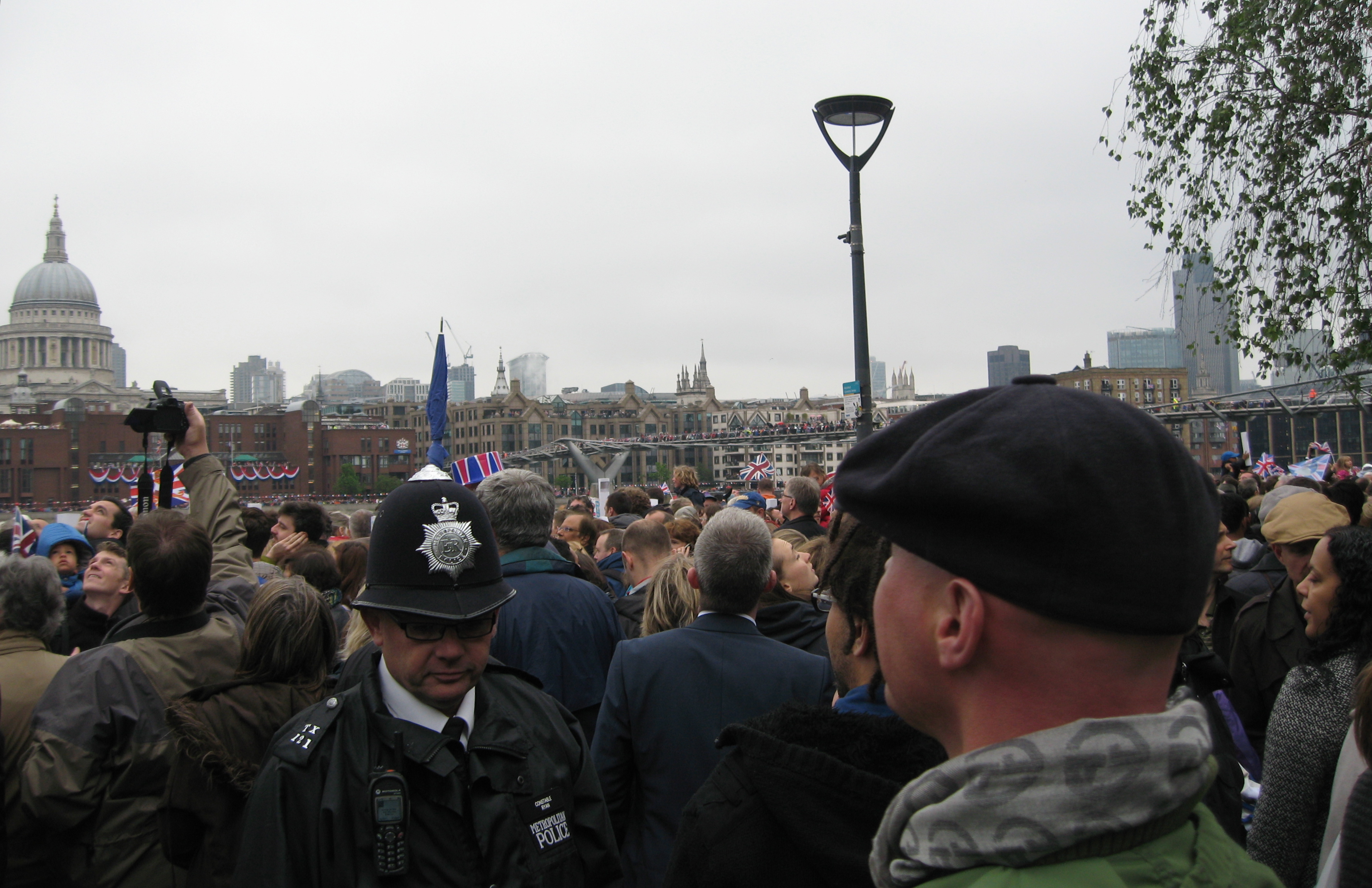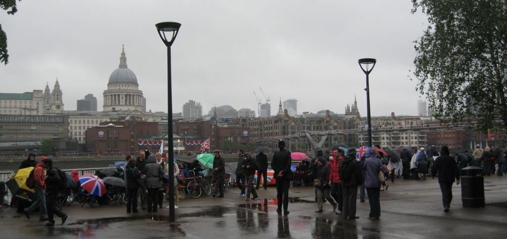 Rain was predicted heading in to the weekend for Sunday, the day of the staging of the largest flotilla in decades to parade down the Thames in honor of Queen Elizabeth II’s Diamond Jubilee. The event was supposed to begin around 2:30 pm and start near Battersea Park, heading up river for Tower Bridge. All looked relatively calm on Saturday, although there always seemed to be a helicopter overhead, and police sirens kept rushing through the city.