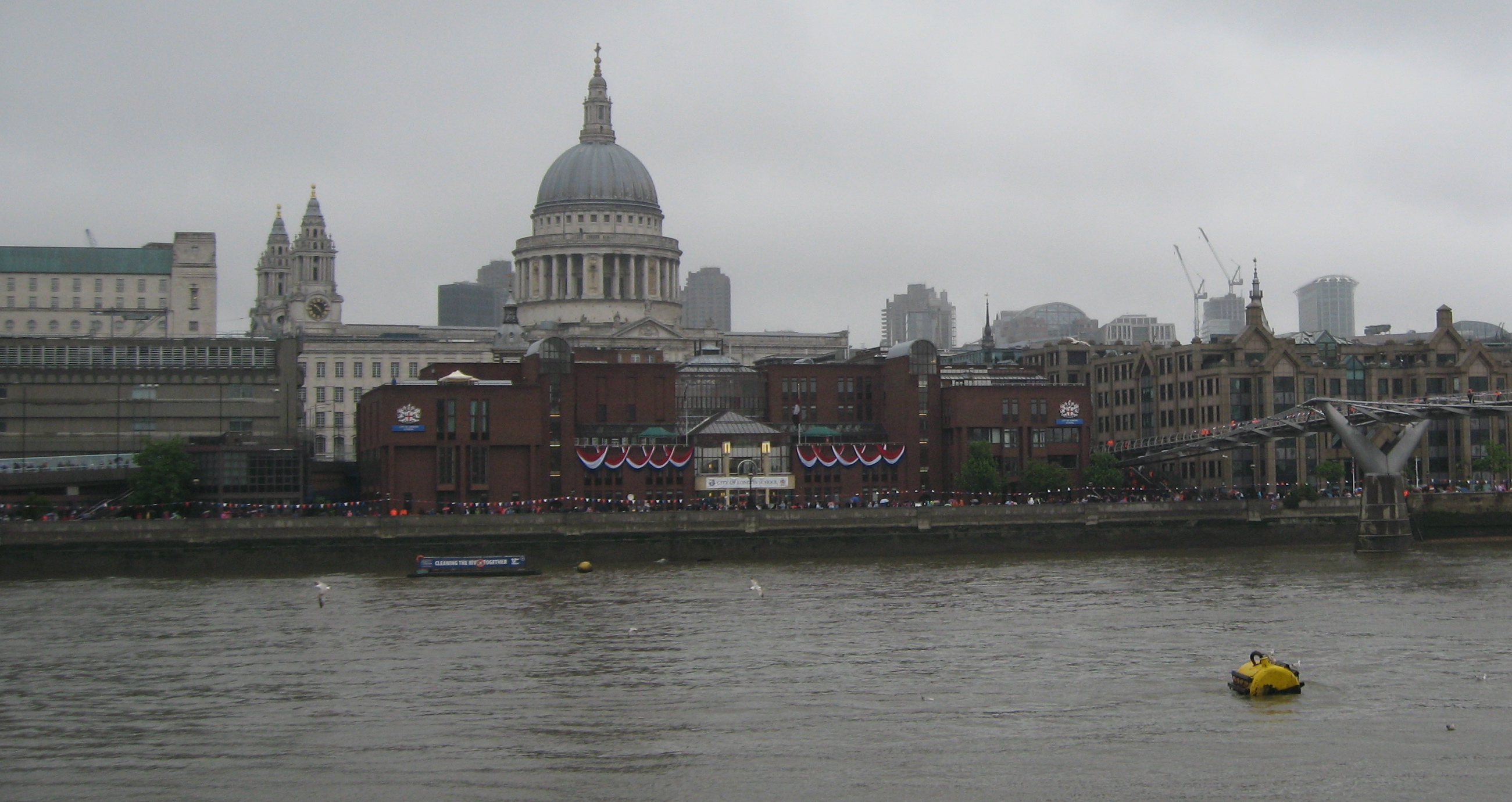 I decided the best approach for the day was to head over to Tate Modern Art Gallery on the South Bank. If it didn’t stop raining, at least I will have gotten to see the Damien Hirst exhibition. If it did, I might be able to catch a glimpse of the river parade.