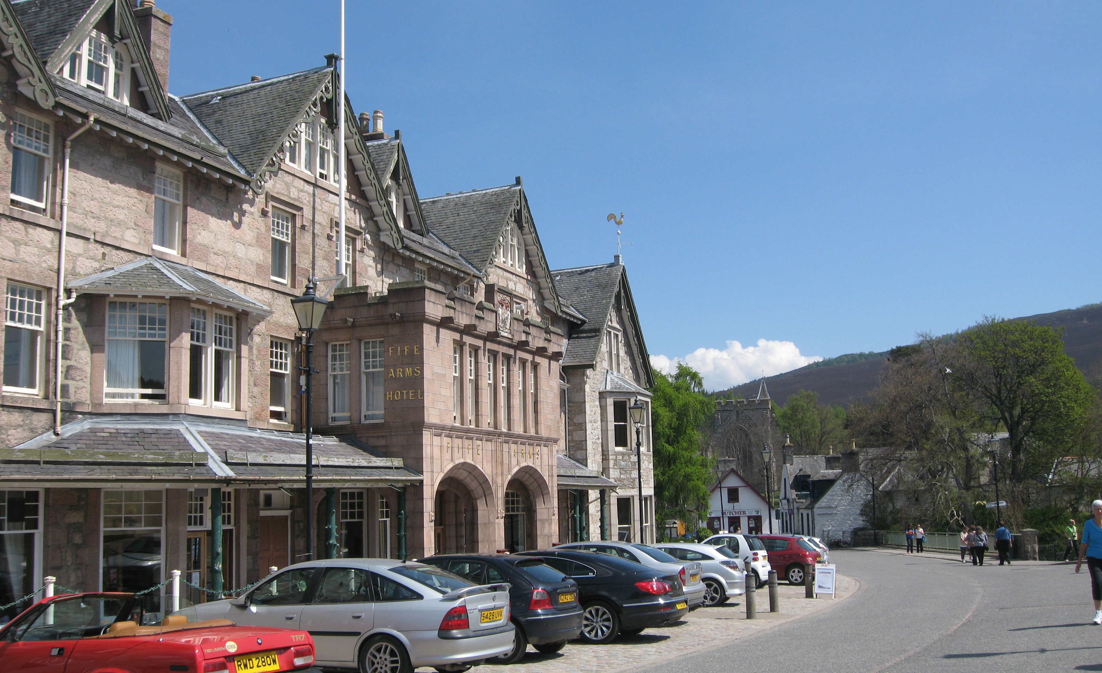 The hotel in Bramer and our favorite lunch stop for sandwiches in the lobby before heading back to Ballater. Photo by me.