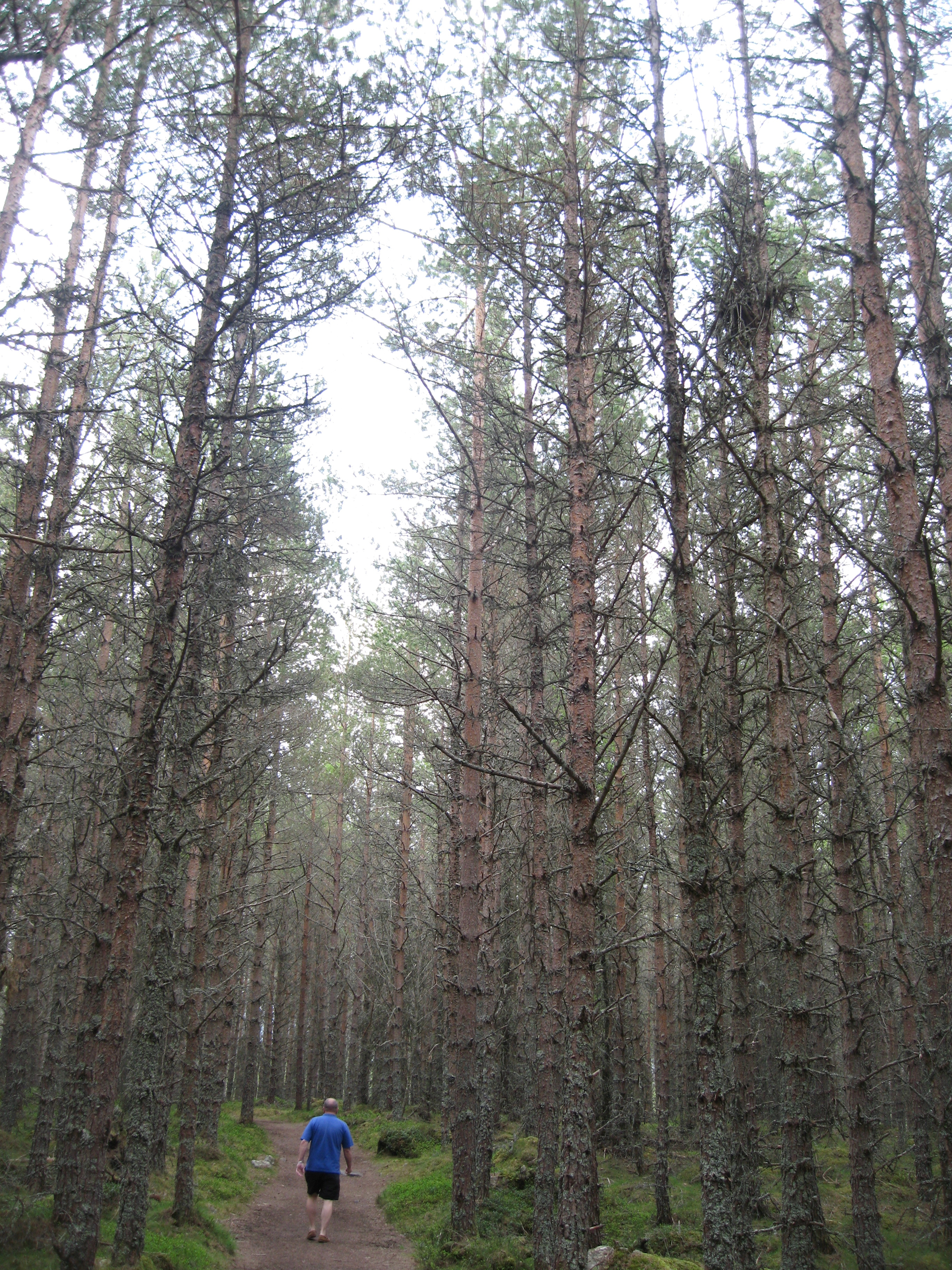 On the next unseasonably warm day in Scotland, we headed to Braemar and the Glen of Lui to take a cool walk in the forest that was highly recommended to us by a knowledgable local. My Beloved Brit even broke out the shorts. It was well in to the 70s, unheard of, especially this time of year.