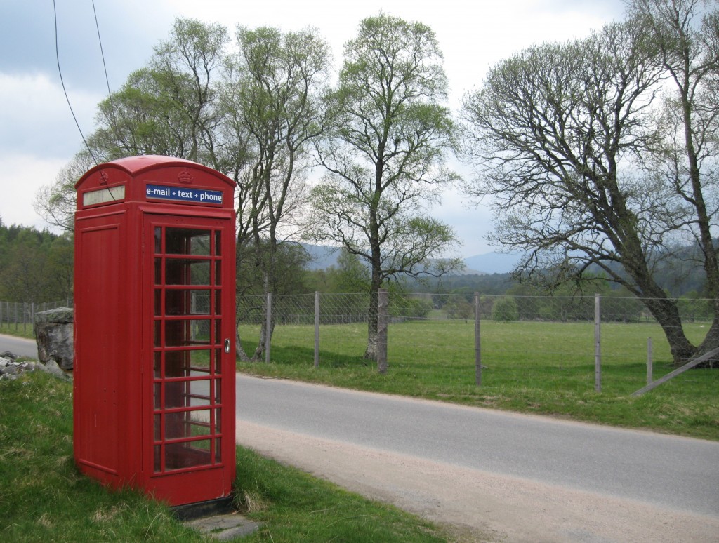 On the drive back to Braemar for lunch, I spotted this classic red British Telephone booth…but notice at the top the inscription…”email,text,phone”.