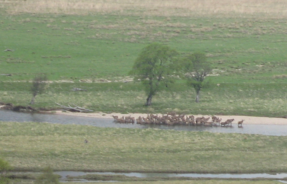 We saw a large herd of beautiful red deer in the distance coming down from the hills to the river’s edge again. We could not get very close, but it was still impressive. We had also seen several cross the road right in front of our car earlier in the morning. Less exciting, more scary, but still very cool once the shock wore off.