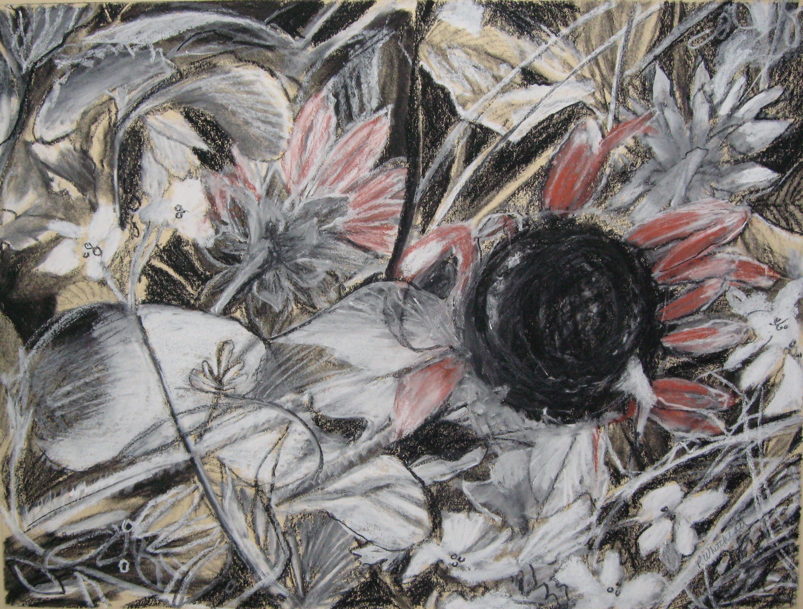 It became more complex and layered and could join the other drawings in the series with pride. Sunflowers in a field.