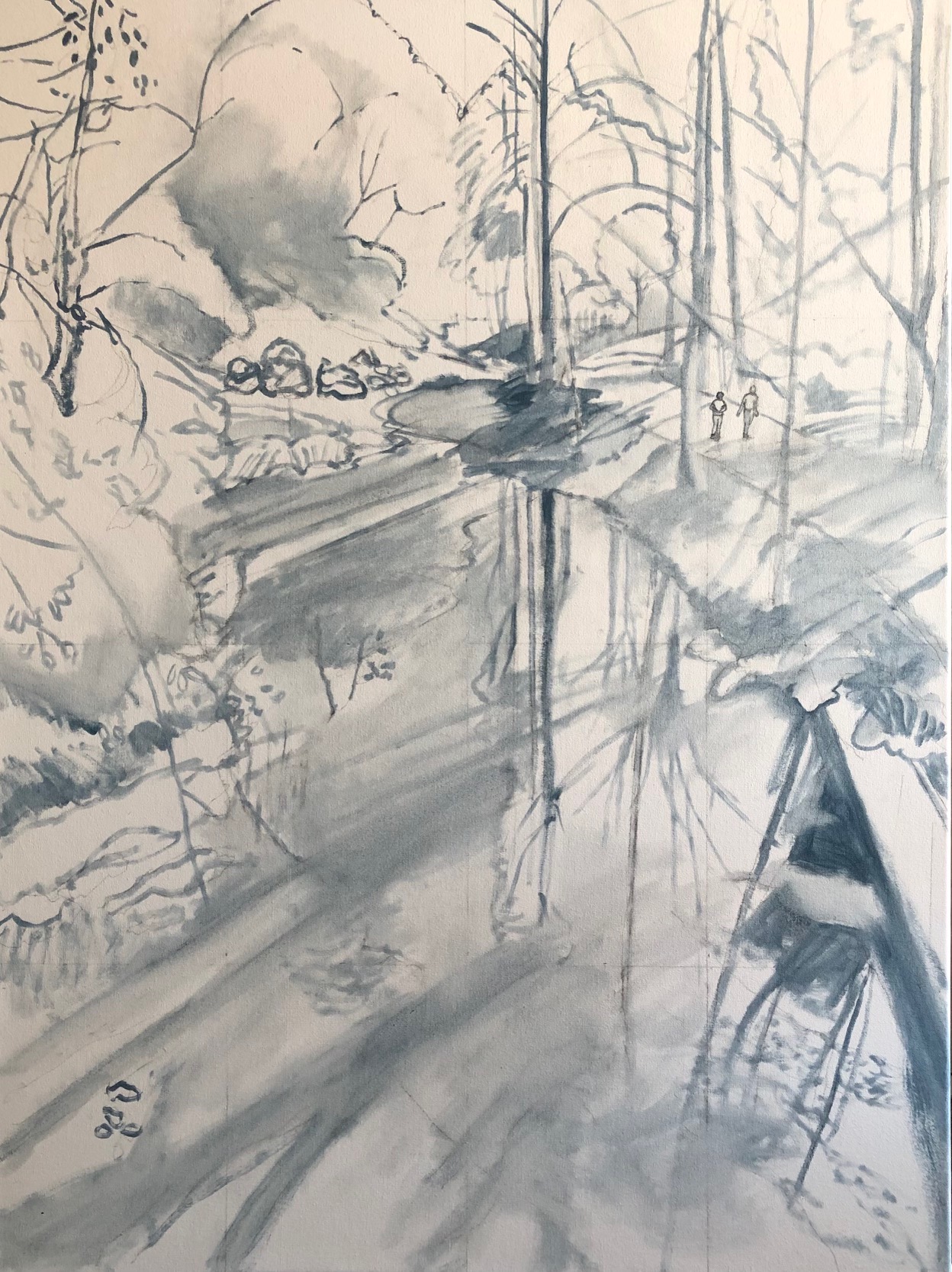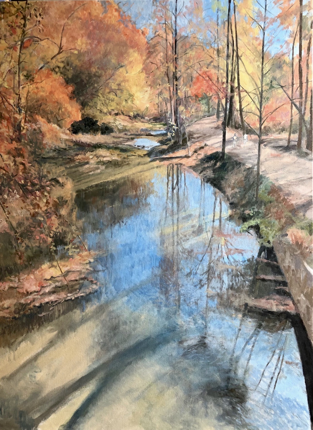 Wetlands:Towpath In Gold, 30 x 40″, oil