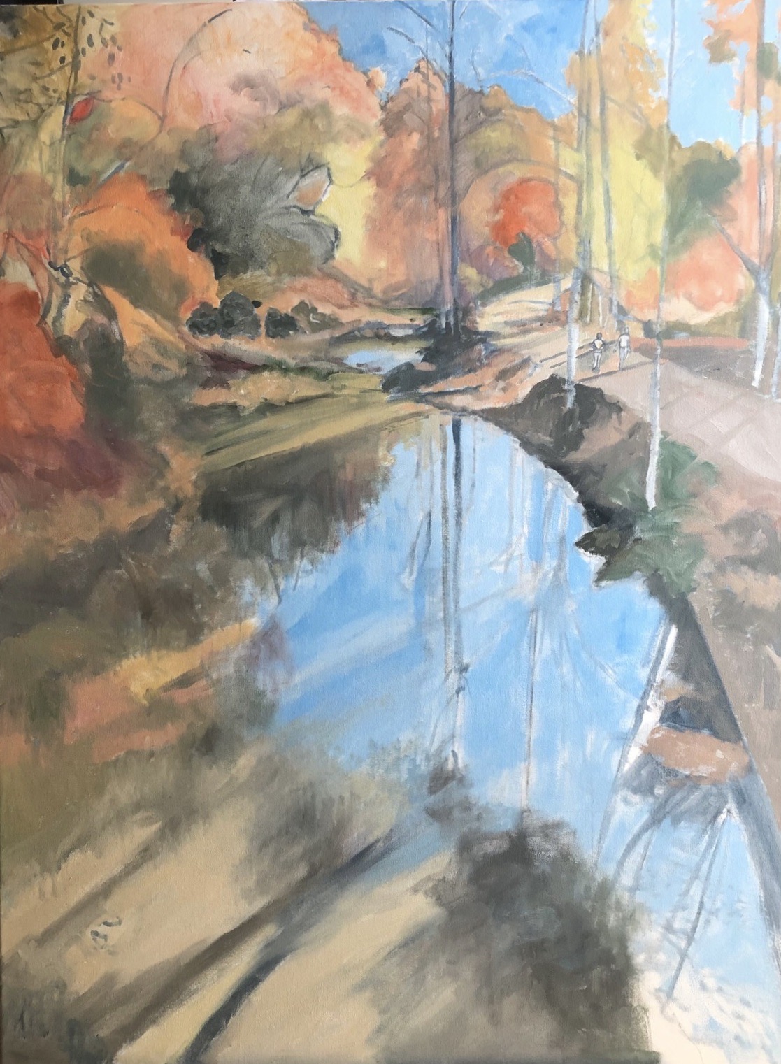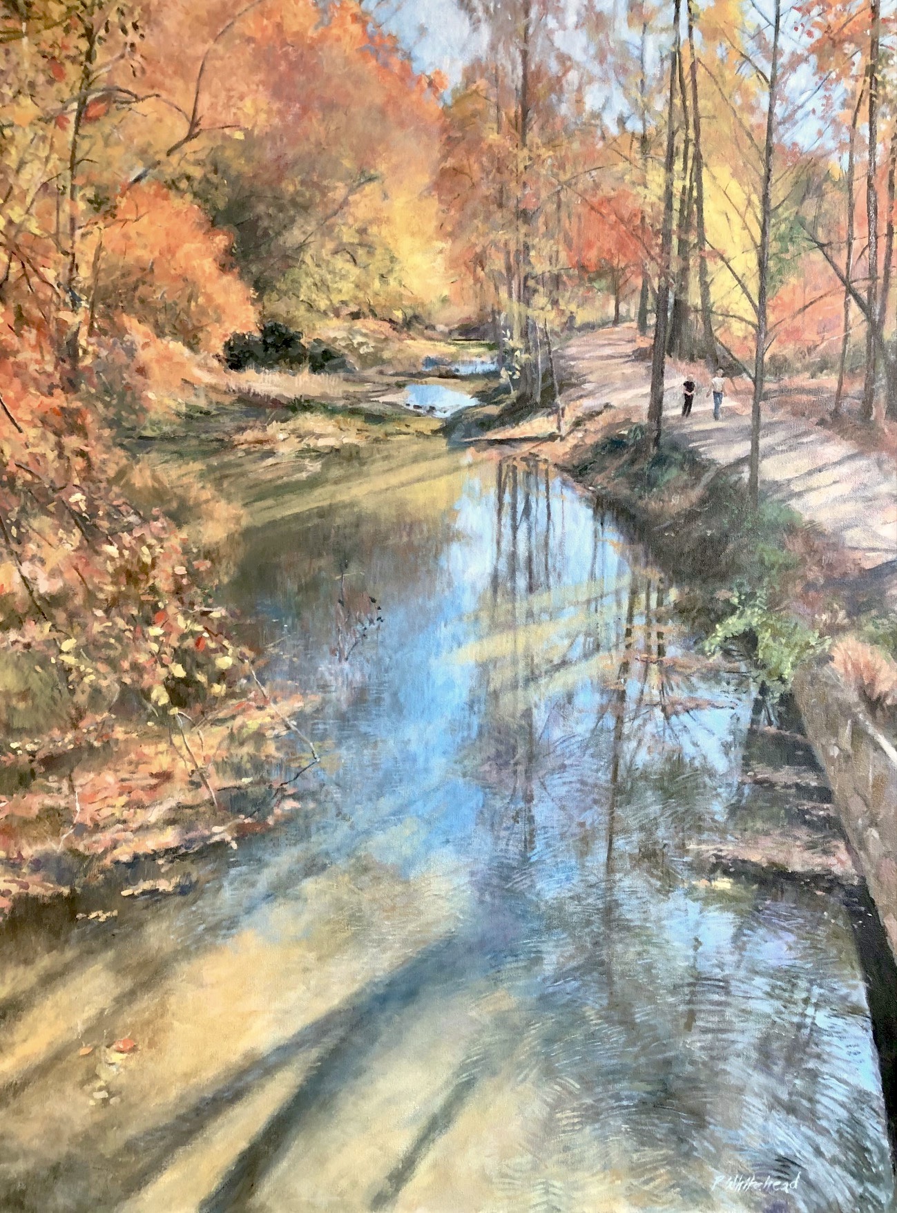 The November light is stunning, captured in the branches and the low, leaf strewn  water of the canal. Everything seemed luminous and translucent. Capturing the layers of light, shadows and reflections was a challenge and a joy.