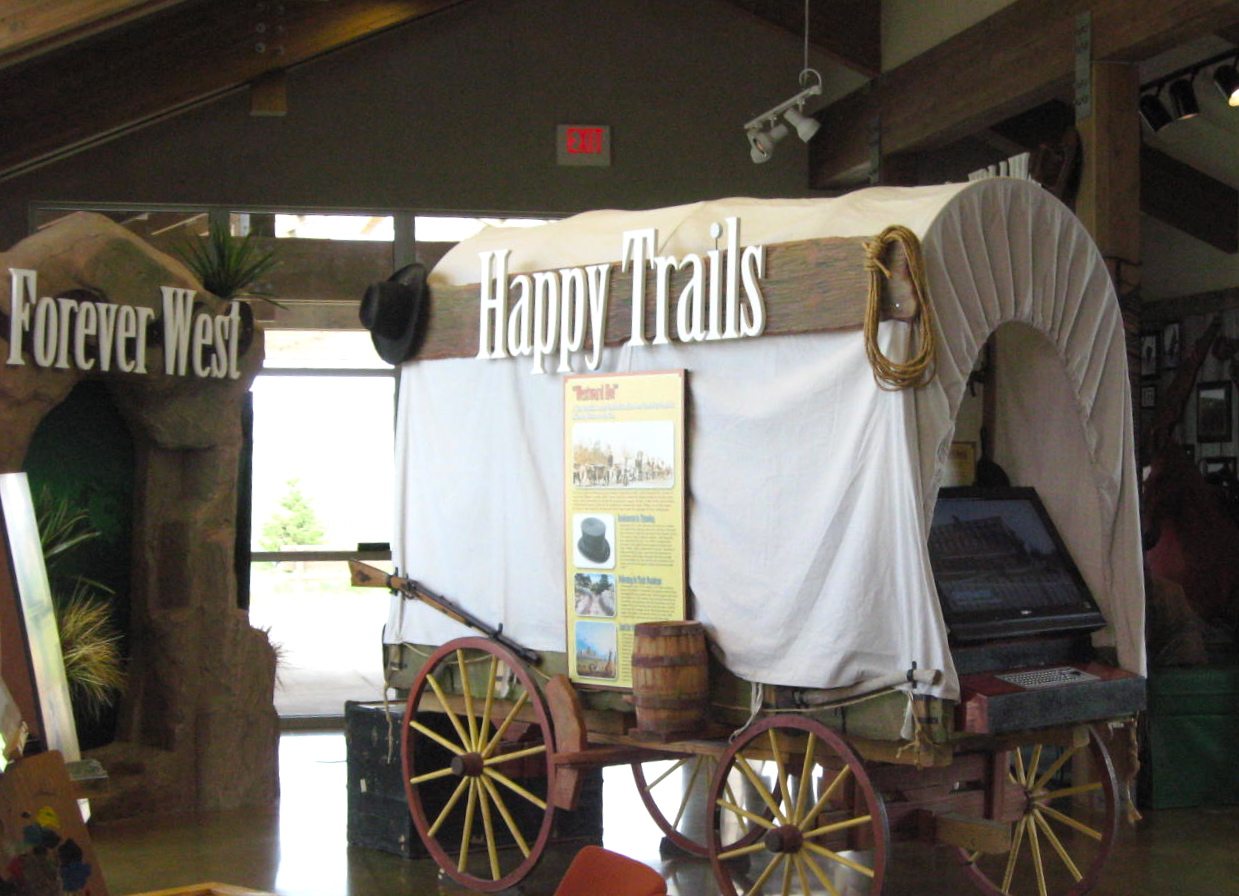Rest stops in America (except on the northeast corridor) all tend to follow a pattern with a state theme. In South Dakota it was teepees. In Wyoming, covered wagons.